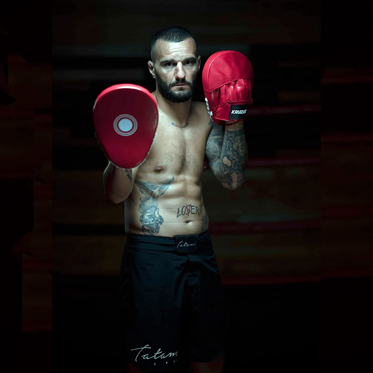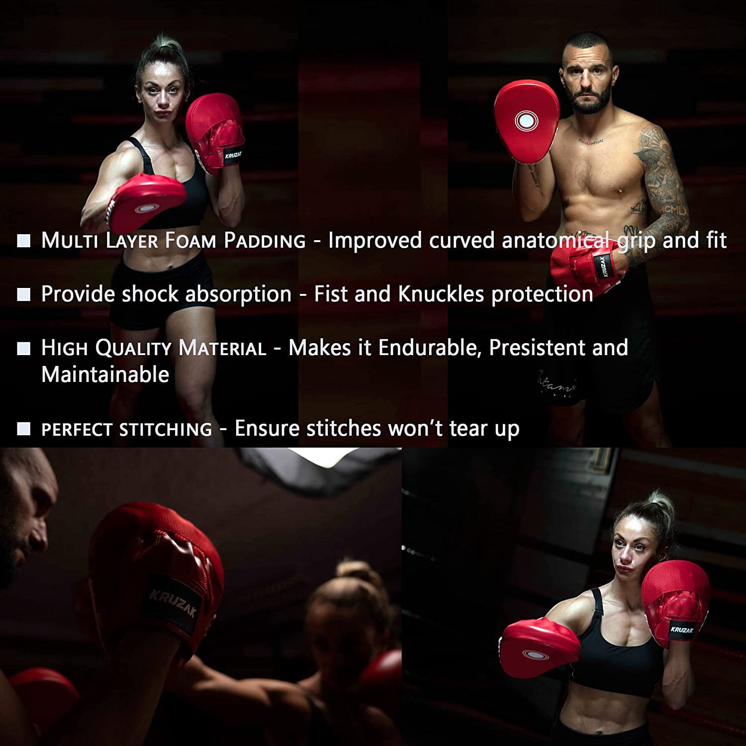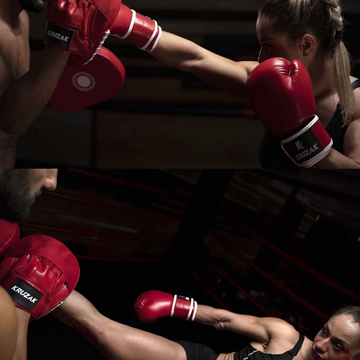 Kruzak Plain Focus Mitts and Boxing Gloves Set for Kickboxing and Muay Thai MMA Training – Fitness Kit with Punching Pads for Martial Arts and Karate (Red, 8 oz)