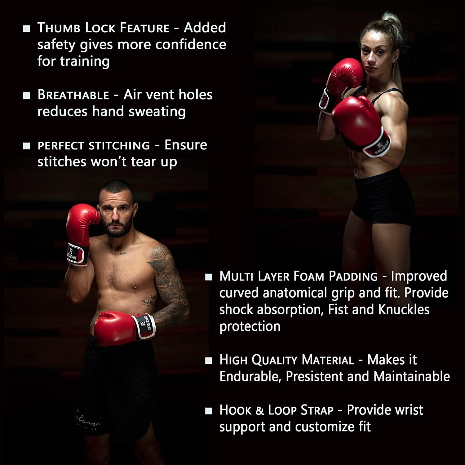 The grip around the wrist ensures that it doesn’t slips off when punched hard on boxing bag or focus pads during training. Multi-layer foam padding provides shock absorption and holds up to the adults hits for a long time. The foam distributes the impact evenly across the surface area and it prevents the forearms and shoulders from injury when you hold for punches. The curved design helps to hold the pads much easier during training. It helps to prevent hand and wrist injuries and makes it more comfortable for the individual punching. The foam used in the boxing gloves & focus pads makes it lightweight for both men and women who are training. Kruzak Unisex boxing gloves focus pads set are available in 8 oz, 10 oz, 12 oz, 14 oz and 16 oz. Air vent holes keep your hands dry and keep moisture away from your hands during training. Six different color variations give you the choice to buy your favorite color boxing gloves, the color variations include red, black, blue, grey, purple and pink.
