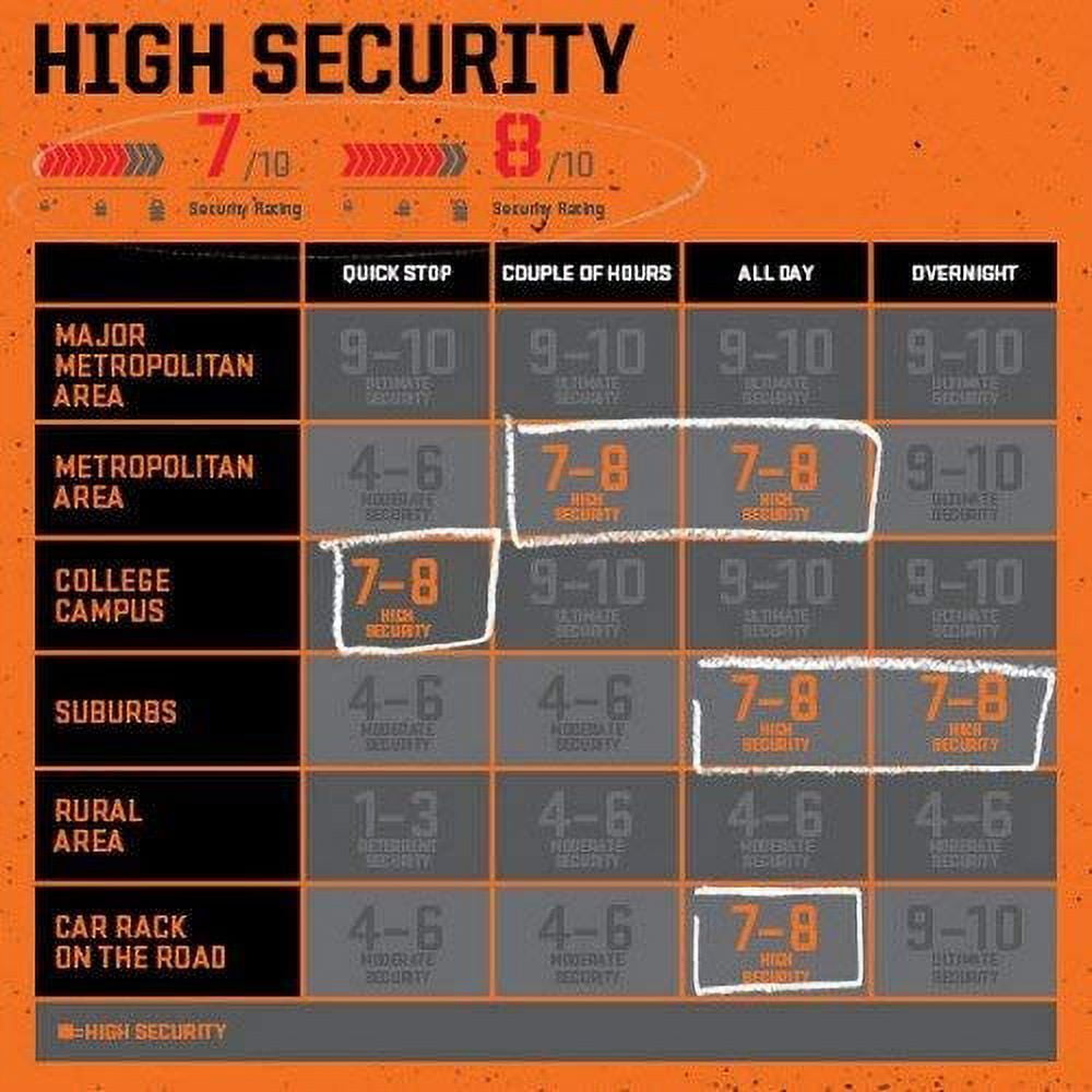10mm six-sided chain links made from 3T MANGANESE STEEL. Patent-pending END LINK DESIGN secures chain to hardened deadbolt eliminating critical vulnerability. HIGH SECURITY DISC-STYLE CYLINDER is pick and drill resistant. Patented, reinforced OVAL CROSSBAR LOCK HEAD. SLIDING DUSTCOVER protects and extends cylinder life. 3 STAINLESS STEEL KEYS – one LED lighted key with replaceable battery and 2 new, ergonomic ‘I” keys. Durable WEATHER-RESISTANT nylon sleeve prevents scratches. Key Safe Program. Product dimensions: 5.25’ (160cm) chain length.Product weight: 9.70 lbs (4.40 kgs).