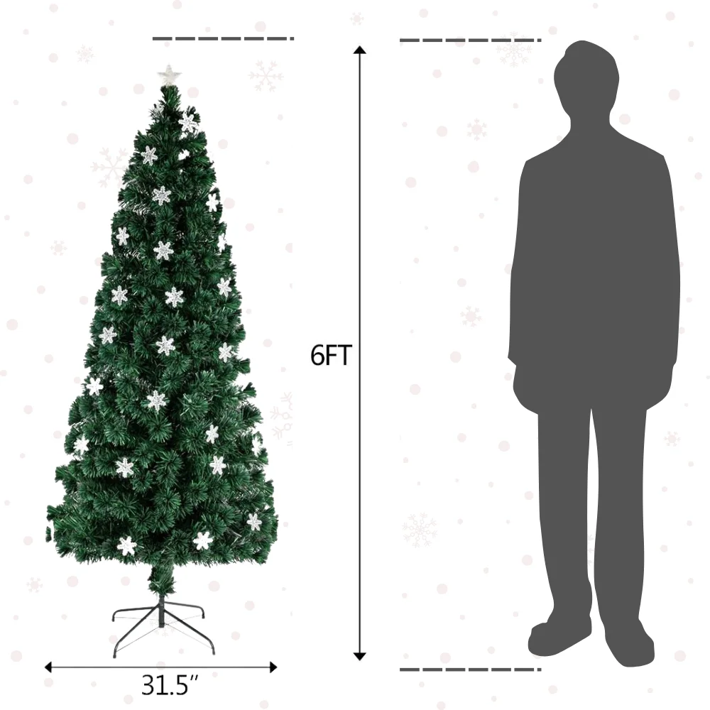 Ktaxon 6ft Artificial Christmas Tree with 50 LED Colorful Lights,30 Snowflake Lights, Xmas Tree for Holiday Party Home Decoration