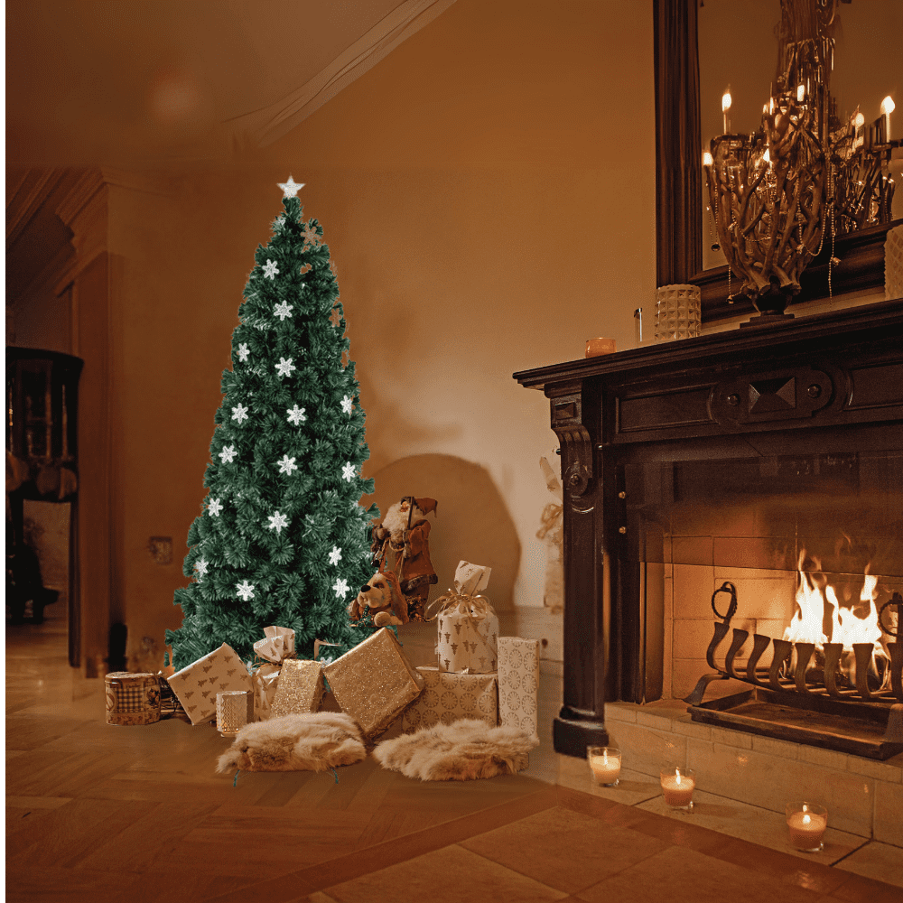 Introduction: Christmas is just around the corner! The Christmas tree is going to give you a warm and nice holiday. The thick blades of our Christmas tree are made from eco-friendly PVC material, which makes the tree is absolutely safe even to babies and also add anti-crush capacity to the tree. Decorated with energy saving UL-certified LED lights and fiber optics, this Christmas tree will present changeable colorful lights with 7 light pattern options. Assembly only requires few steps, after putting the tree and metal stand together, all you require to do is to straighten out the branches, so the tree will achieve the best effect. Merry Christmas from all Products Features: High classic PVC material makes the branches look more real and more full. Metal tree stand can provide more stability. No assembly required for the tree, just join the tree to the stand Assure safety even you light the tree for a long time. Pre-lit design save your time to decorate the tree. With Snowflakes and top star. Optical fiber LED lights makes your tree more shiny. Specification: Material: Leaves are PVC material Base: 40cm Iron Frame Product Height: 6ft (Without Tree Top Branches) Contains 58 Acrylic Snowflakes Packing Dimensions: (39.37 x 7.48 x 7.48)” / (100 x 19 x 19)cm (L x W x H) Product Weight: 10.80lb / 4.9kg Package Include: 1 x Fiber Optic Christmas Tree