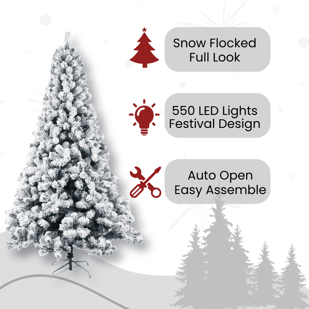 Ktaxon 6ft Pre-Lit Christmas Tree, Snow Flocked Xmas Tree Pine Tree with 550 LED Lights, Christmas Holiday Decor