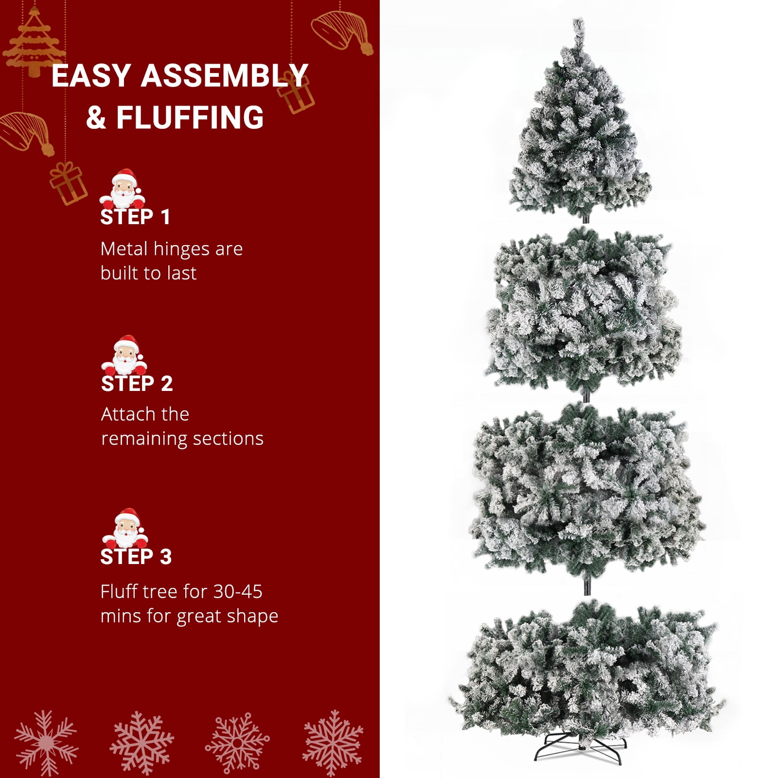 Nicely flocked “snow” are tightly attached to branch tips. Auto Open Christmas tree branches, you do not have to breaking them by hand, without the need for manual opening, making it convenient to install and pack up. With 2094 branches, the christmas tree looks very dense and full Green flocked with 900 Warm Lights makes the trees more beautiful. The artificial tree comes with a remove control, you can change the LED lights to different colors you like.