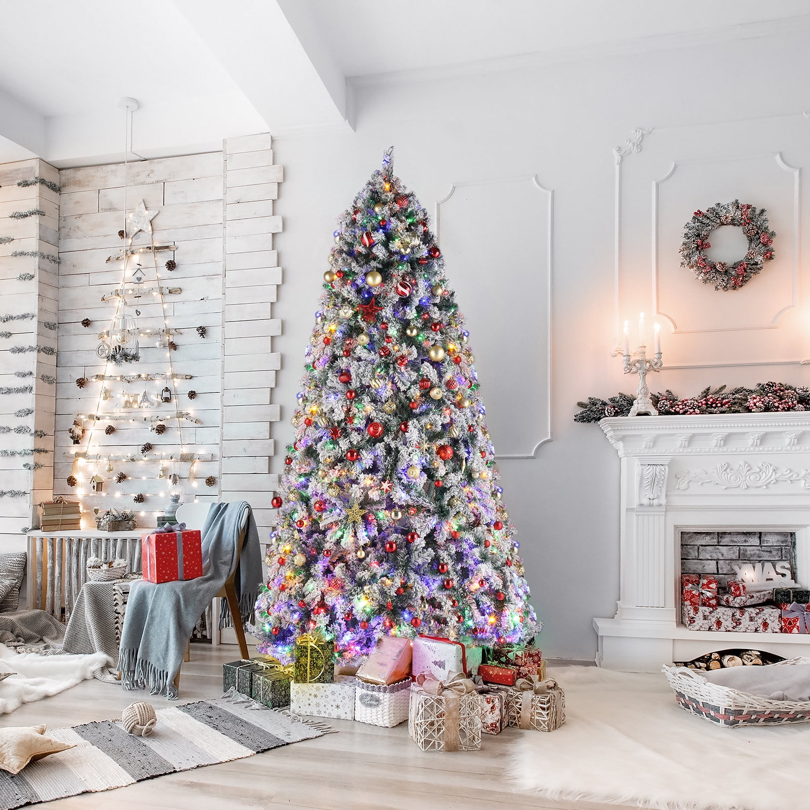 Ktaxon 9ft Pre-lit Artificial Christmas Tree , Snow Flocked Full Prelighted Xmas Tree with 900 LED Lights, 2094 Branch Tips& Auto Open Green