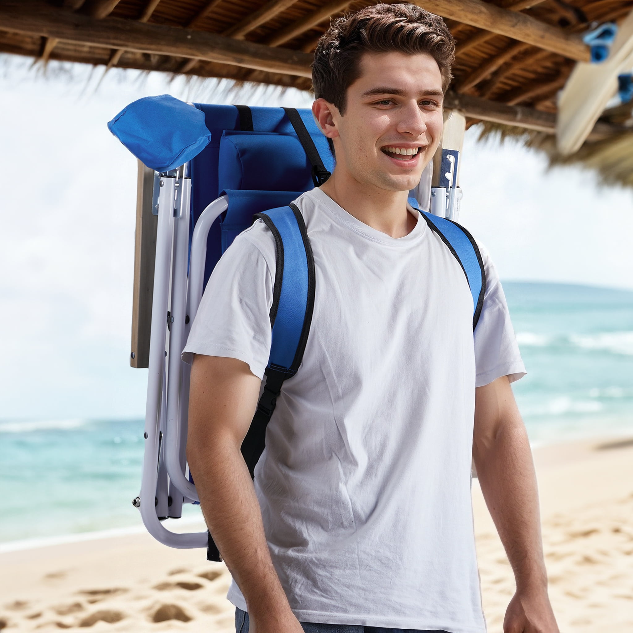 Features: Muti-Used: Ideal for hiking, hunting, camping, backpacking, the beach and more. Comfortable softouch non-slip handle reduces hand stress, easy on the joints, and perfect for long sessions in the garden. Max weight capacity: 220 lbs. Convinient & Easy to Carry: Can folds into a backpack so you can carry it with ease along with any other items you may have. Carries easily on your back with adjustable padded shoulder straps. The backpack pouch may carry your blankets, hand-held cameras, water bottles, game boards, etc. Foldable Design: When unfolded, the chair can recline into 4 different positions for ultimate comfort while soaking up the rays. Reclines smoothly to any angle from upright to almost horizontal. Made from steel frame and 600D polyester fabric. Folds flat for easy transport & storage. Exceptional quality and Durable: Powder coated steel and 600D polyester fabric construction means this lounger can be left out for all the seasons. Satisfaction Guarantee: We sincerely provides service for customers. If you have any question about our product, please contact our customer service and we will reply in 24 hours. Warm Prompt: Please confirm the product size before purchasing, to make sure the size of our product is in line with your requirements. After-Service: Since the satisfaction of customer is always our primary concern,so if you have any problem when using this product please don’t hesitate to contact us first. Specifications: Material: Iron & 600D Polyester Fabric Color: Blue Dimensions: (140 x 55)” / (355 x 140)cm (L x W) Weight: 148.15oz / 4200g Folded Dimensions: (26 x 23 x 2.7)” / (66 x 58 x 7)cm (L x W x H) Overall Open Dimensions: (30 x 23 x 25)” / (76 x 58 x 64)cm (L x W x H) Weigh Capacity: 3520oz / 99790g Removable/Adjustable Padded Headrest: Cup Holder Package Includes: 1 x Beach Chair