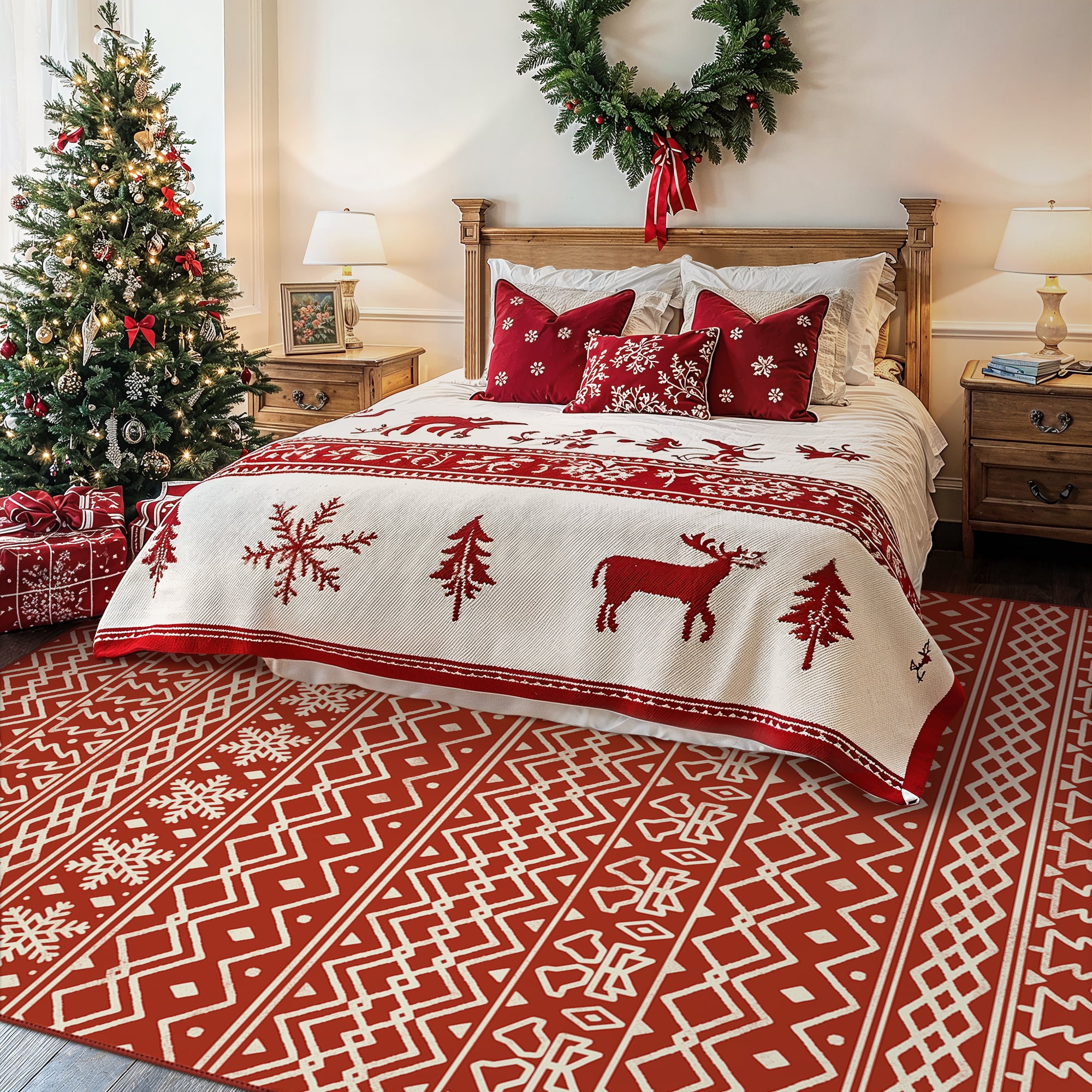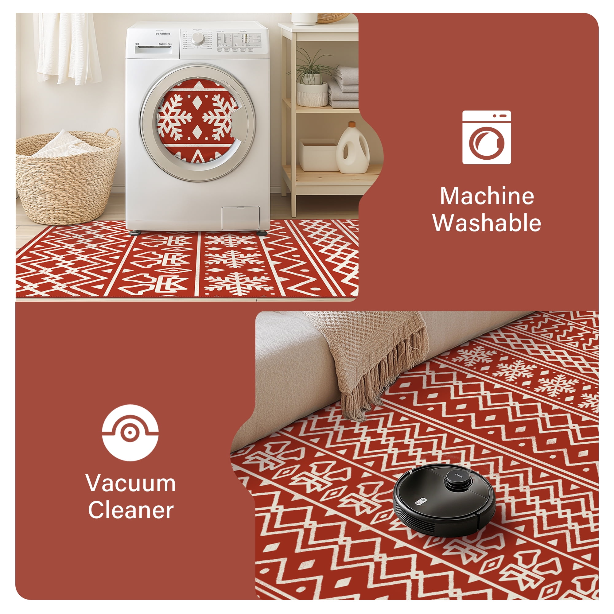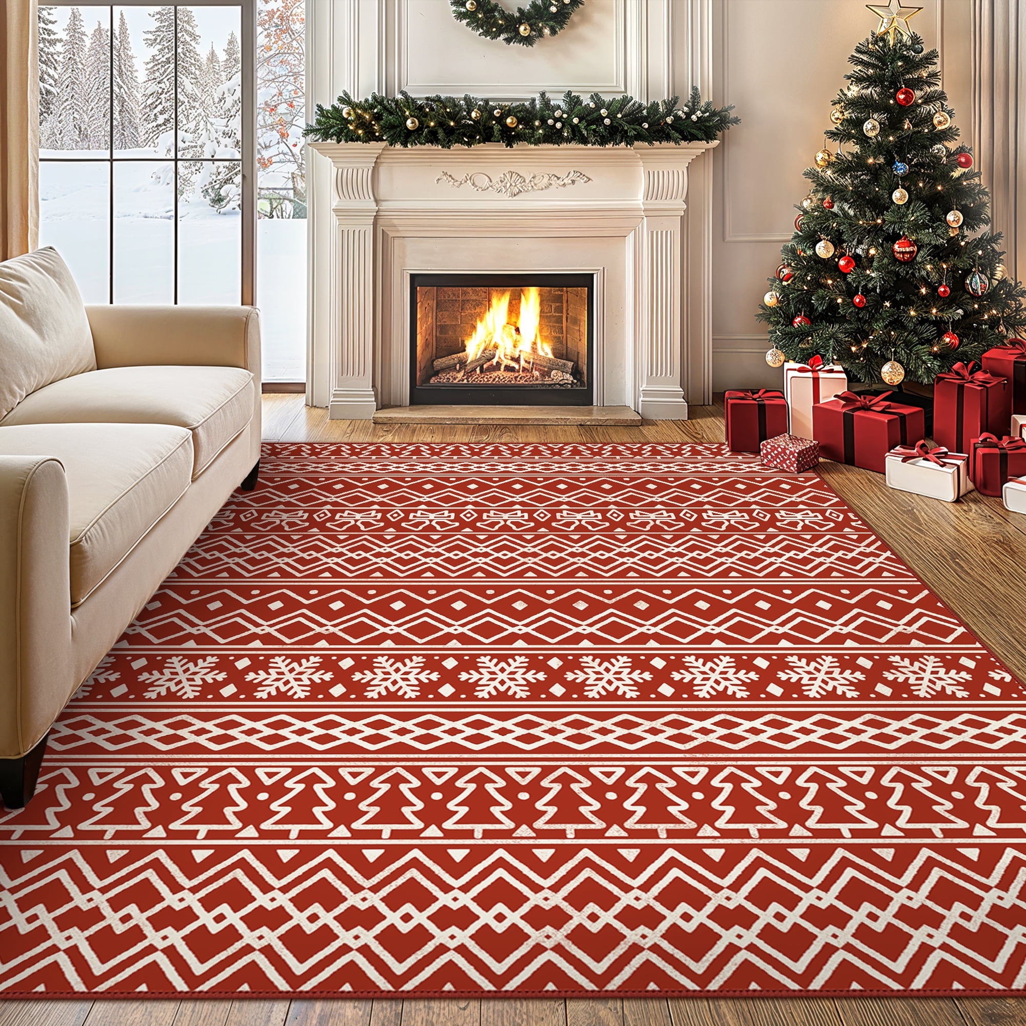 As Christmas approaches, KUETH area rugs are pleased to introduce our special Christmas rug, perfect for entryways, hallways, kitchens, living rooms, and bedrooms. They are lightweight and low-profile. Experience the enduring durability of ultra-thin carpets, designed for high-traffic areas with dense machine weaving. Enjoy low-maintenance care with our machine-washable rugs, designed to withstand washing without shedding or breaking. No need for additional padding, ensuring a safe environment for children, pets, and the elderly during everyday use.