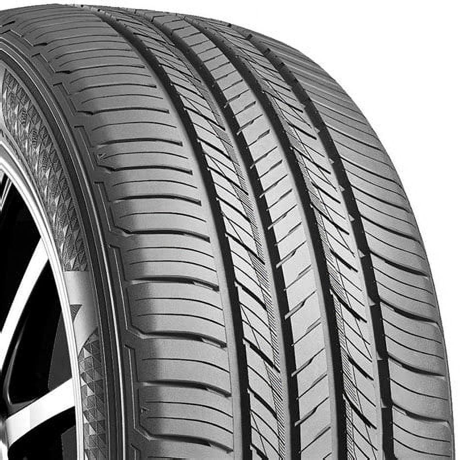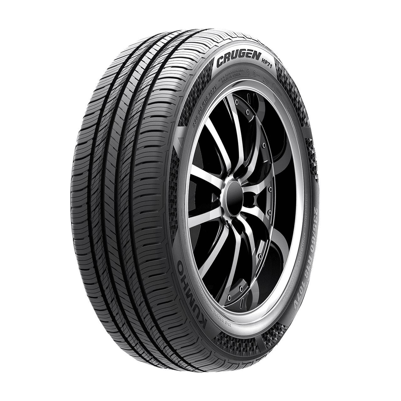 The Kumho Crugen HP71 is a touring, all season tire manufactured for passenger vehicles and SUVs. This model has some high performance sizes as well. Kumho offers a 65,000 mile treadwear warranty with this model. The tire guarantees excellent all weather traction. The symmetric tread pattern with the full depth siping pattern and the independent tread blocks upgrade the dry, wet and winter weather road gripping ability. The better grip on the road surface upgrades the year round driving safety as it doesn t allow the tire to lose its traction in various conditions. The optimized tread block placement enhances the hydroplaning prevention. The grooves and siping pattern disperse water and slush from beneath the tire s footprint, ensuring a secure wet and winter weather road gripping capability. The model promotes high levels of driving comfort. It combines its tread design and internal structure to heighten the driving comfort levels. The structure s optimized shape and its ability to closely follow the road surface at all times enables the tire to absorb the shock of driving throughout the tire s performance. The better road contact, in this manner, decreases the road vibrations felt in the vehicle s cabin. The variable pitch phase shift of the ribbed tread design manages to lower the road noise levels. They create a sound frequency that negates the road and tread pattern at the moment they are generated. As a result, the road noise does not reach the vehicle s cabin and does not ruin the driving enjoyment of the passengers. This provides a quiet and comfortable driving experience. The tire is easily handled thanks to its optimal tread design. The stronger center rib and the optimal shoulder pattern keep the tire s road contact to improve the controllability and the maneuvering capability. The better road contact of the center rib increases the steering responsiveness and the driving stability. This improves the steering response time and accuracy to the driver s commands, while it stabilizes the structure against the driving pressure affecting the model. The shoulder blocks heighten the number of biting edges gripping the road surface, enhancing the cornering and maneuvering capability. The first-rate handling ensures a safer all weather performance. The Crugen HP71 offers a lengthened tread life. The tread design improves the tread life and the tire s usability. The stronger tread elements are stabilized during the tire s performance, which actively prevents tread flexing. As a result, the tire is able to evenly distribute the driving pressure along the tread area. The equally circulated forces of acceleration, cornering and braking avoid uneven tread wear formations on the tire surface. In this manner, the tire extends its usability and tread life significantly.