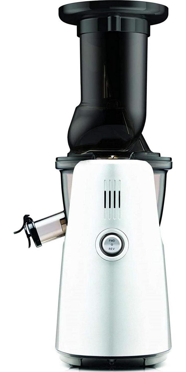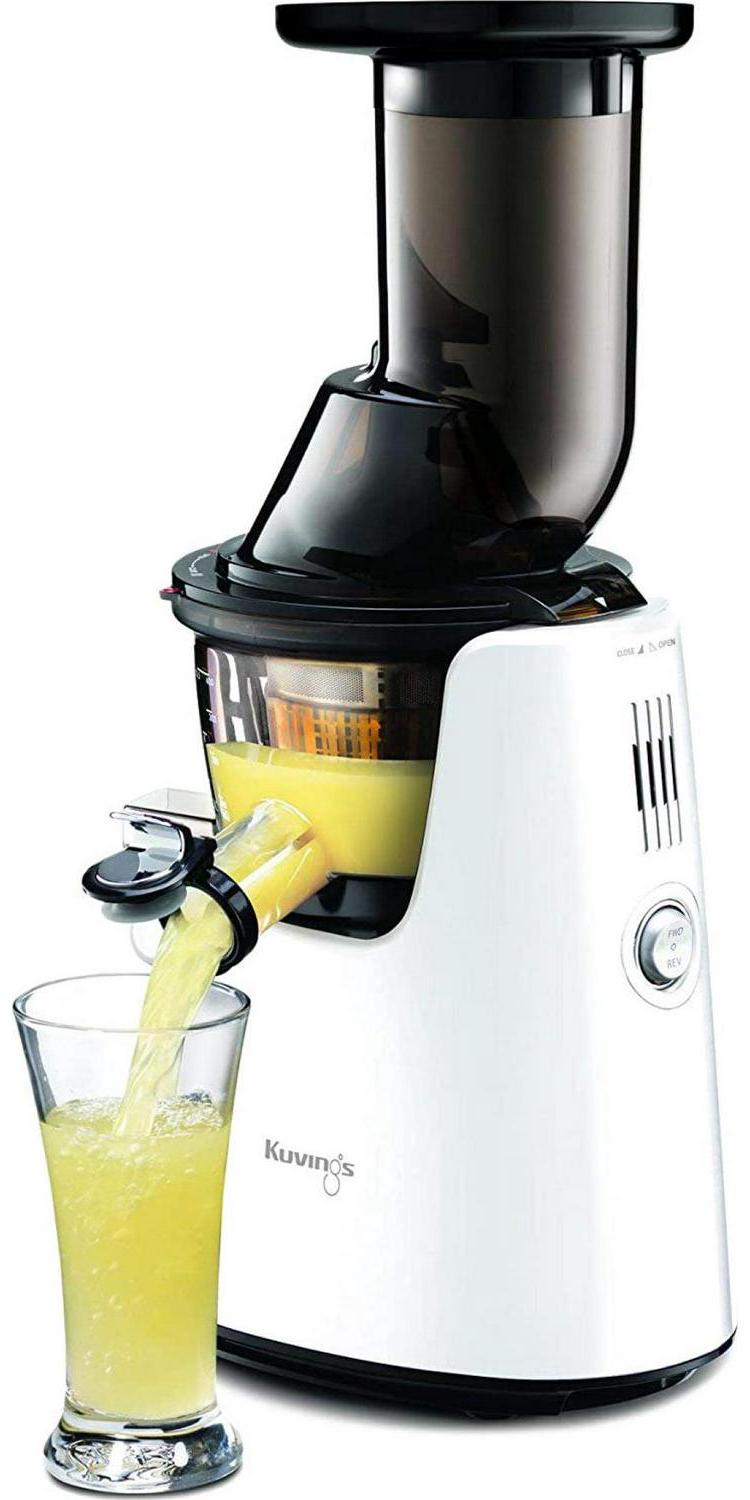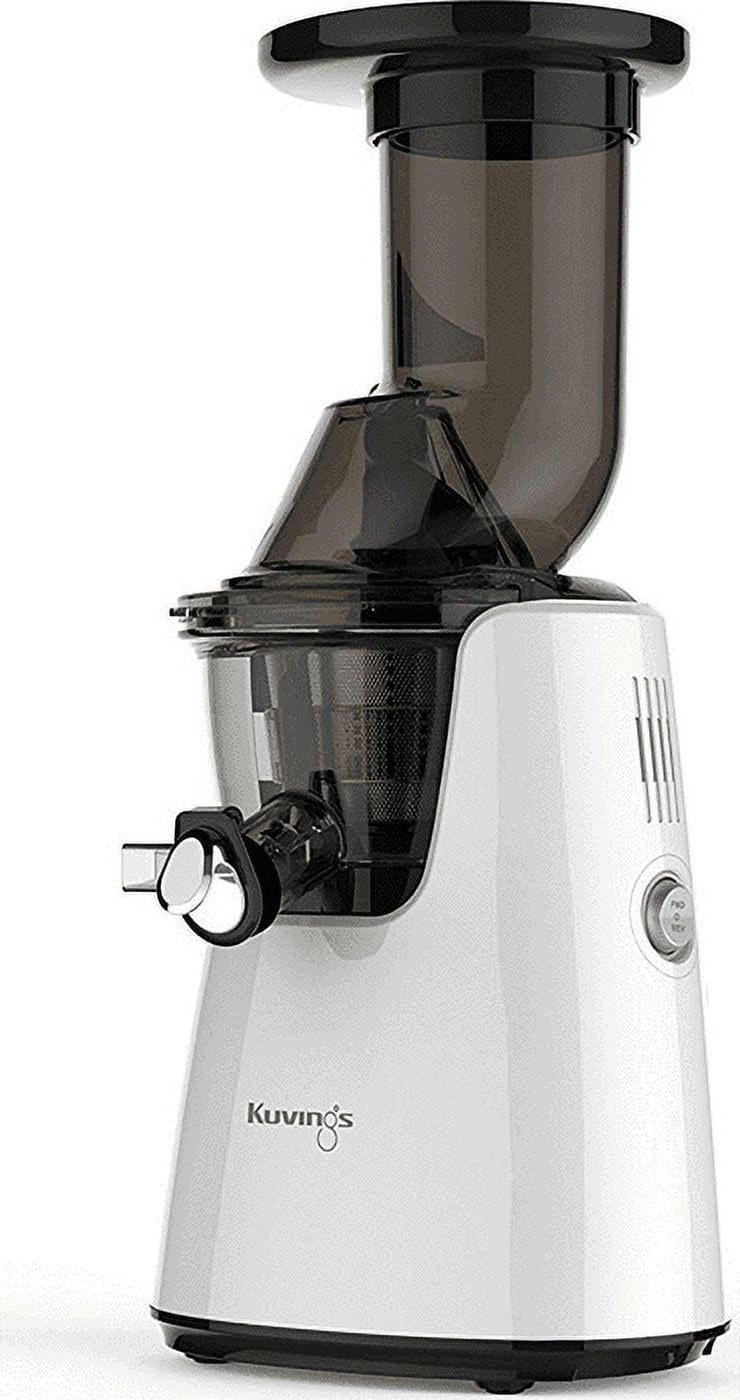 Make better, healthier juices, creamy, rich smoothies, or fruity, refreshing sorbet with Kuvings’ Whole Slow Juicer Elite. This juice extractor slow squeezes using a masticating style to preserve the enzymes and nutrients in juice. Plus, its 3 inch wide feeding tube can fit whole produce so you don’t have to slice up your fruits and veggies before juicing. The machine’s 3 interchangeable strainers make a variety of beverages and treats, while the leak-proof design features ensure a mess-free and thoroughly convenient blending experience. And the Whole Slow Juicer functions quietly, producing less noise and vibration than standard juicers, thanks to its slow spinning motor. So make that early morning fresh juice, fruit smoothie, or energy drink, or healthy late night snack without worrying about interrupting your family’s sleep schedules! The Whole Slow Juicer Elite is ideal for all types of fruits and vegetables including leafy greens, wheat grass, carrots, apples, and more. Backed by a manufacturer’s 10-year limited warranty. Measures 9″ x 8″ x 18″.Features of the Kuvings Whole Slow Juicer Elite Silver Pearl include:Slow squeezing, masticating style juice extractor with upgraded juicing screwNewly designed smart cap prevents leaking and mixes ingredients thoroughly for richer juices3 inch wide feeding tube accommodates whole fruits and vegetables3-in-1 multi-function with strainers for juice, smoothies, and frozen dessertsLeak-proof juicing bowl with all-in-one bottom makes cleaning and assembling easierSlim, space-saving design and quiet functioningRotating cleaning brush for juice strainer maintenanceSafety-lock and cooling systemExtracting container is made with BPA-free TritanJuice strainer and screw with strong UltemManufacturer’s 10-year limited warranty Measures 9″ x 8″ x 18″