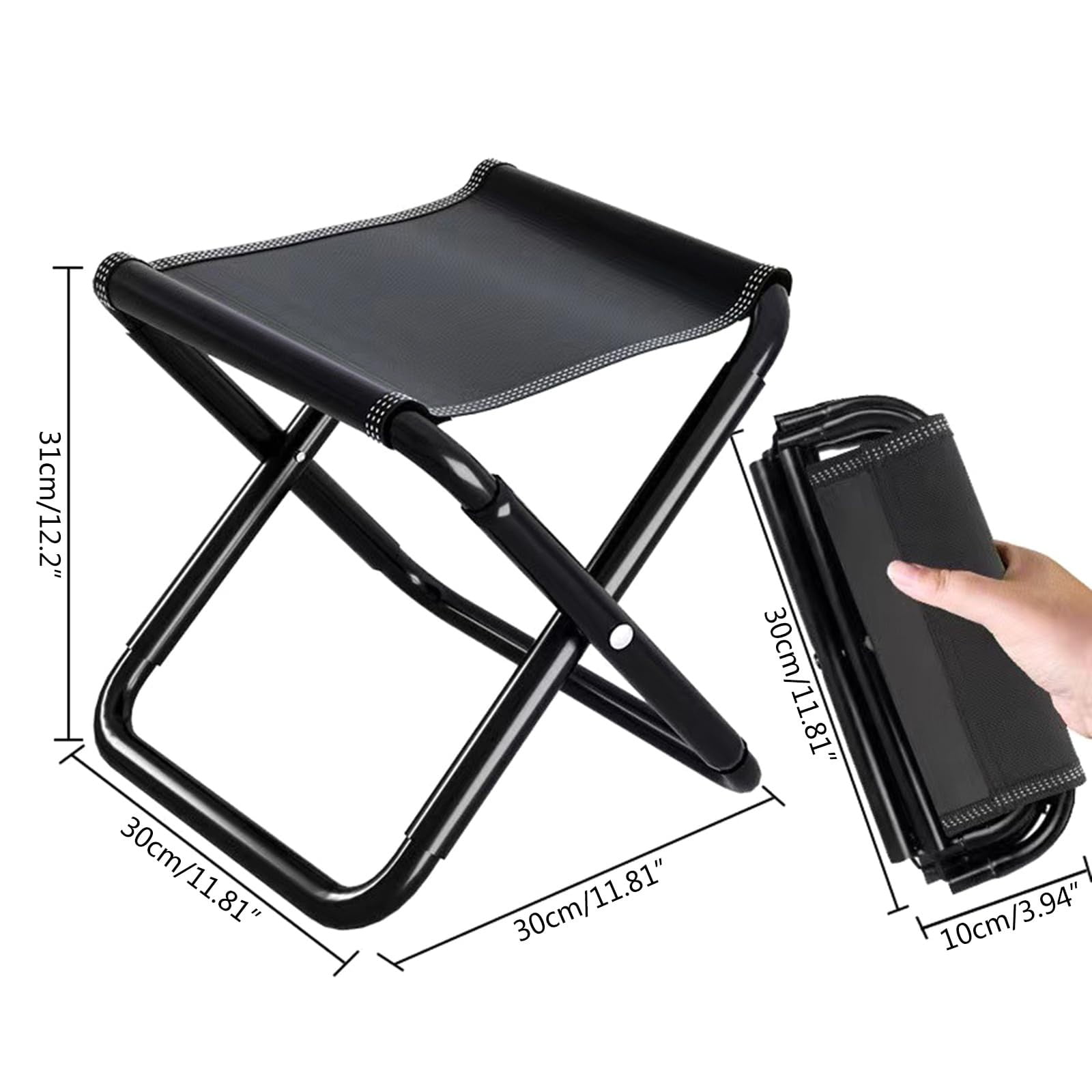 Camping Stool 16in Tall Large Size Folding Stool With Carry Bag Aluminum Alloy Bracket Load Capacity To 300lbs For Outdoor Travel Hiking BBQ Fishing Beach Features: 【With Mesh Bag】- The folding stool is designed with a mesh bag where you can store keys, telephones, snacks, drinks, etc. 【Various Occasions】- It is suitable for outdoor activities, such as camping, fishing, picnic, gardening, barbecue, hiking, etc. What’s more, you can use it when you need to wait in a long line. 【Folding Camping Stool】- The height of the camping stool is 12in, which is comfortable for most people to sit. Come with a storage bag, convenient to put into backpack, portable and practical. 【Up to 330lbs】- The folding stool is made of aluminum alloy bracket, which can support 330 lbs max, enough to bear an adult’s weight. And the weight is 1.5lbs, suitable for outdoor activities. 【High Density Jacquard Fabric】- The folding stool is made of high-density jacquard fabric, which is wear-, water and , and can be used for a long time. Product Description: Camping Stool, 16in Tall Large Size Folding Stool with Carry Bag ,Aluminum Alloy Bracket, Load Capacity to 300lbs, for Outdoor, Travel, Hiking, BBQ, Fishing, Beach Material: metal Color: as the picture shows, (Due to the difference between different monitors, the picture may have slight color difference. please make sure you do not mind before ordering, Thank you!) Package weight: 400g Package size: 30x10x3cm,(Please allow 1-3mm error due to manual measurement. please make sure you do not mind before ordering.)
