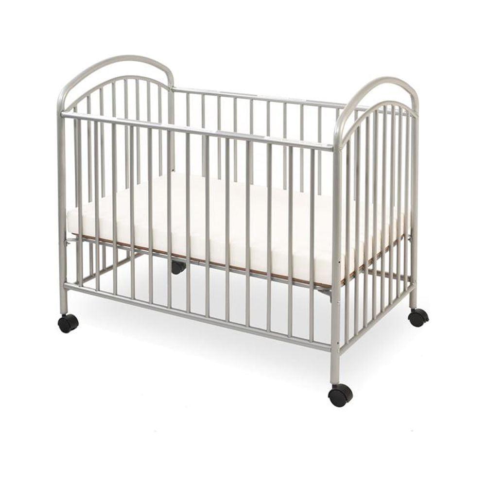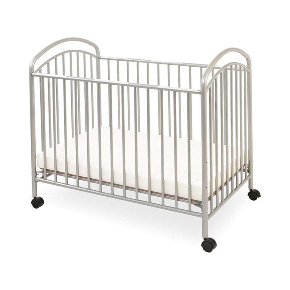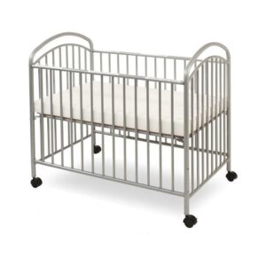 L.A. Baby Classic Arched Mini/Portable/Compact Crib – Twin arched headboard design in a ready to assemble NON folding Mini/Portable/Compact sized metal crib. This crib fits into a much smaller space than does a full size crib but will accommodate the same size child. Three convenient mattress height positions make it easier to reach an infant. Durable non toxic powder coated frame in your choice of a variety of colors that withstands repeated cleaning. This crib comes with four swivel casters, two locking, so it is also easy to move from room to room. Product includes a 24″ x 38″ x 2″ thick mattress to provide support and comfort to your little one while meeting federal flammability standards 16 CF 1633. Also meets mandatory CPSC 16 CFR 1220 regulations for non full size cribs and is JPMA Certified.