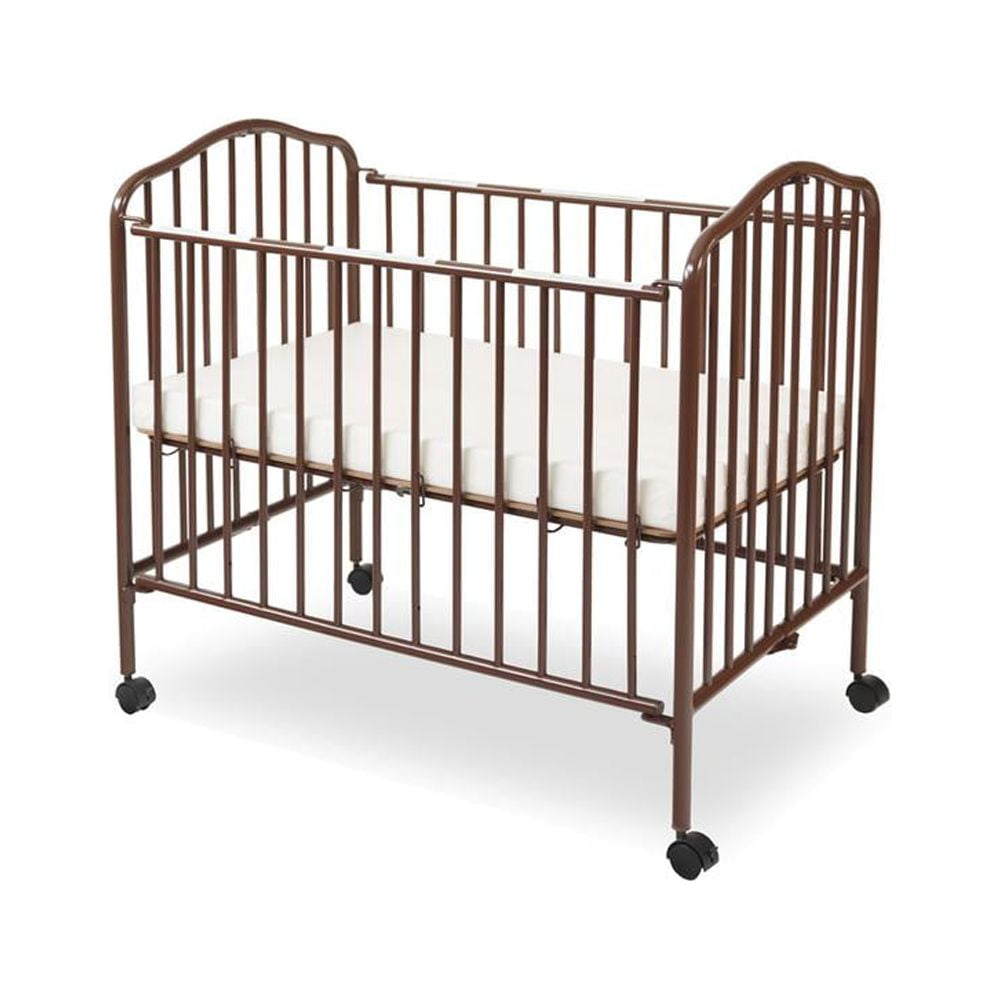 Mini/Portable/Compact Folding Crib, Chocolate L.A. Baby Mini/Portable/Compact Crib – L. A. Baby’s compact folding metal crib in chocolate is also offered in a variety of other colors and finishes. The durable non toxic powder coated finish withstands repeated cleaning. Perfect for grandma’s, the apartment and any place where space is at a premium!! Comes fully assembled yet folds up small so you can store it in the closet, or any other convenient area when it is not in use. This crib comes with four swivel casters, two locking, so it is also easy to move from room to room when open or folded. The mattress support has two settings and the low profile allows easy access to baby no matter the mattress setting. Product includes a 24″ x 38″ x 2″ thick mattress to provide support and comfort to your little one while meeting federal flammability standards 16 CF 1633. Also meets mandatory CPSC 16 CFR 1220 regulations for non full size cribs and is JPMA Certified. L. A. Baby’s Mini/Portable/Compact folding metal crib in chocolate is also offered in a variety of other colors and finishes. The durable non toxic powder coated finish withstands repeated cleaning. Perfect for grandma’s, the apartment and any place where space is at a premium!! Comes fully assembled yet folds up small so you can store it in the closet or any other convenient area when it is not in use. This crib comes with four swivel casters, two locking, so it is also easy to move from room to room when open or folded. The mattress support has two settings and the low profile allows easy access to baby no matter the mattress setting. Product includes a 24″ x 38″ x 2″ thick mattress to provide support and comfort to your little one while meeting federal flammability standards 16 CF 1633. Also meets mandatory CPSC 16 CFR 1220 regulations for non full size cribs and is JPMA Certified.
