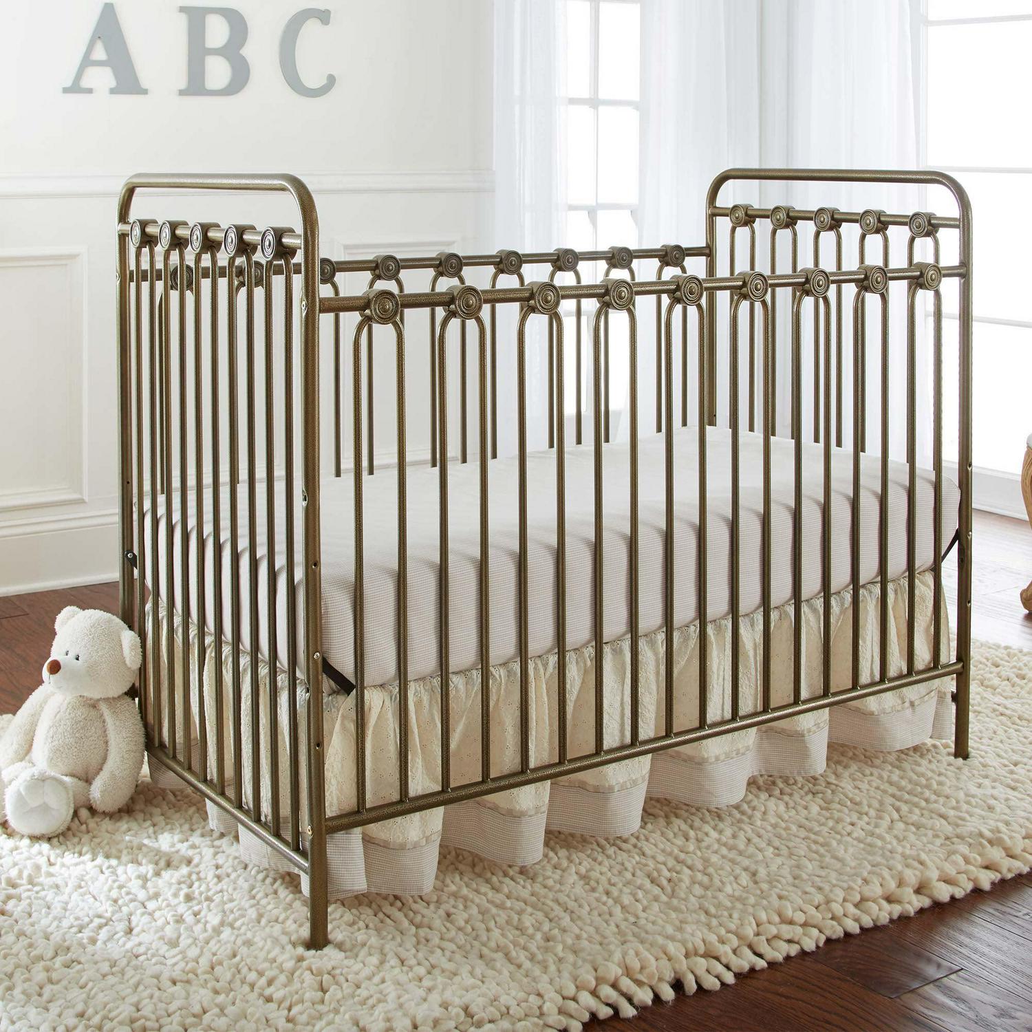 LA Baby Napa 3 in 1 Convertible Full Sized Metal Crib, Golden Nugget