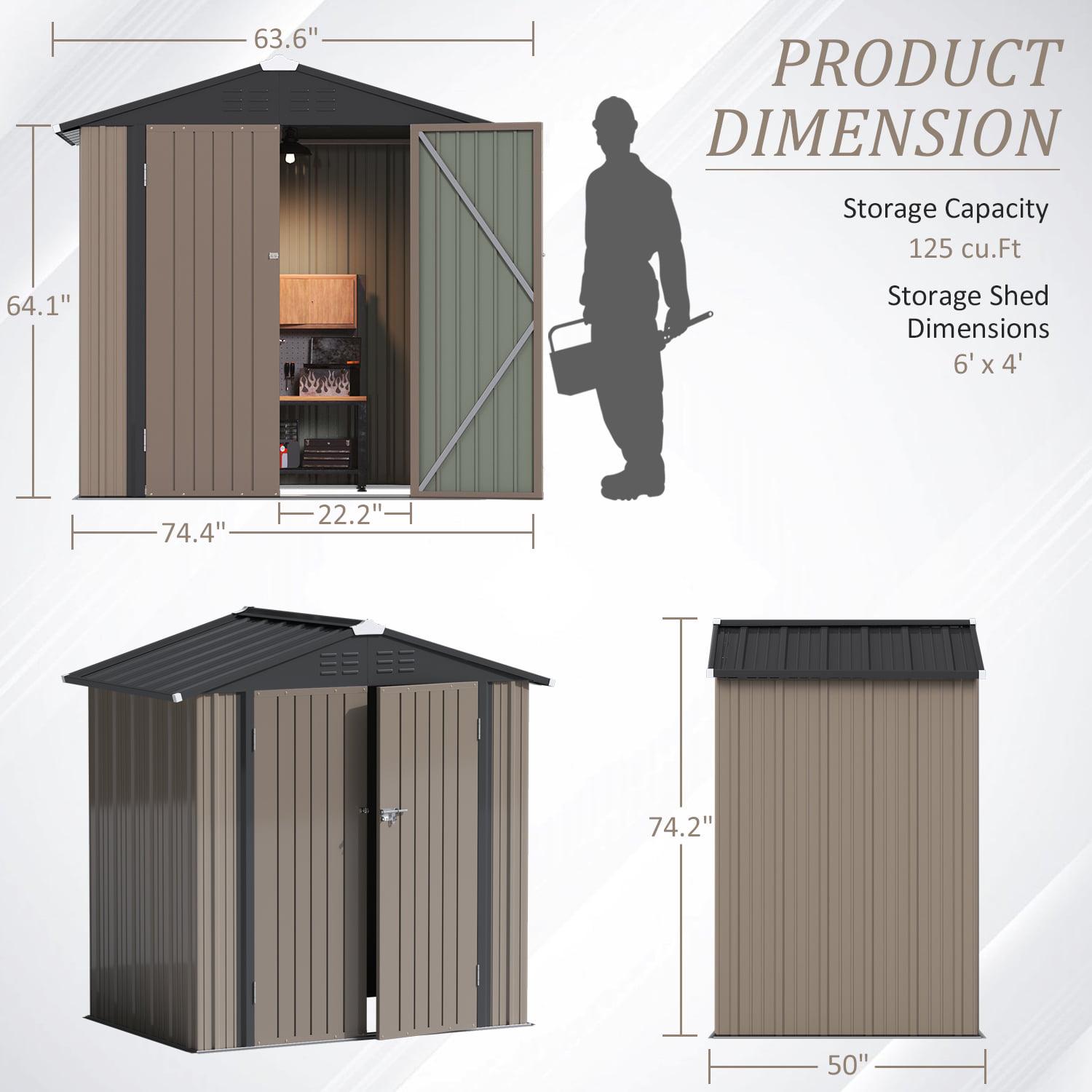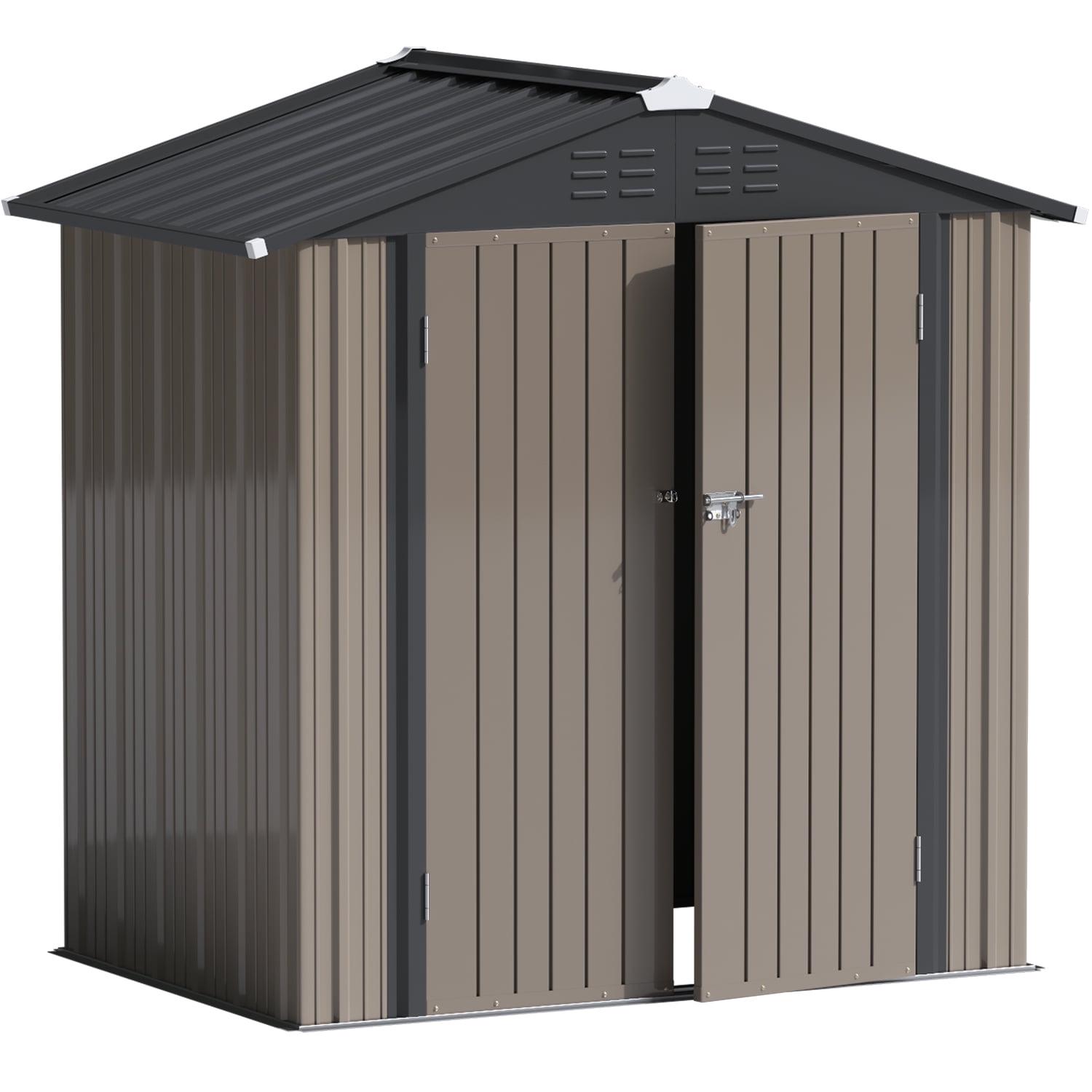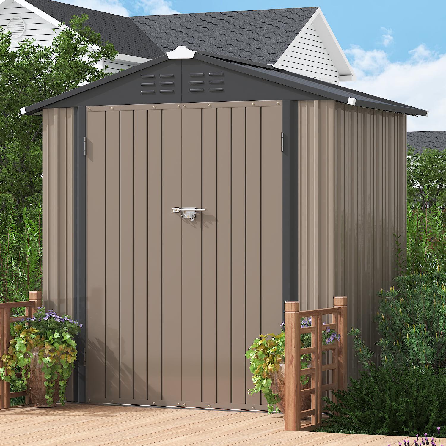 Lacoo 4′ x 6′ Outdoor Storage Metal Shed for Tool Storage, Outdoor House for Backyard and Garden,Brown