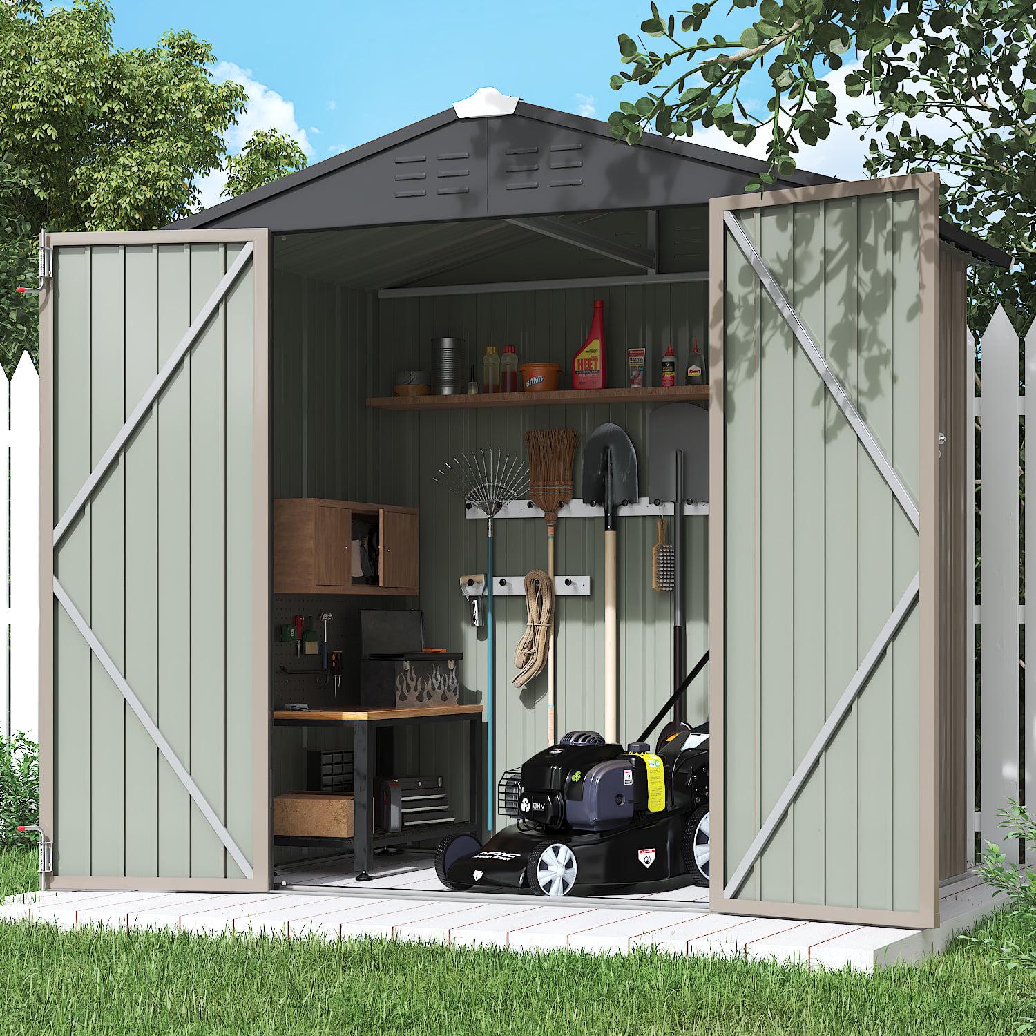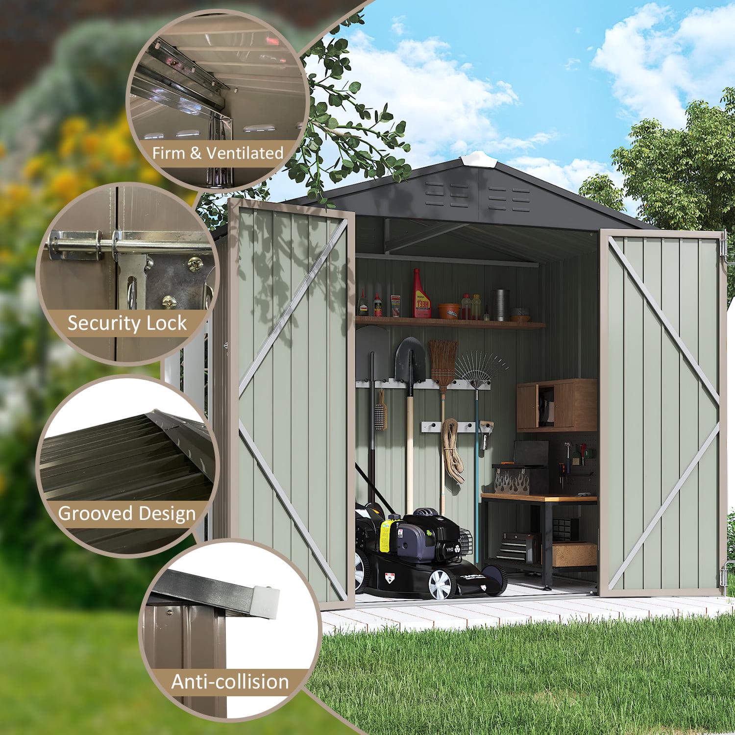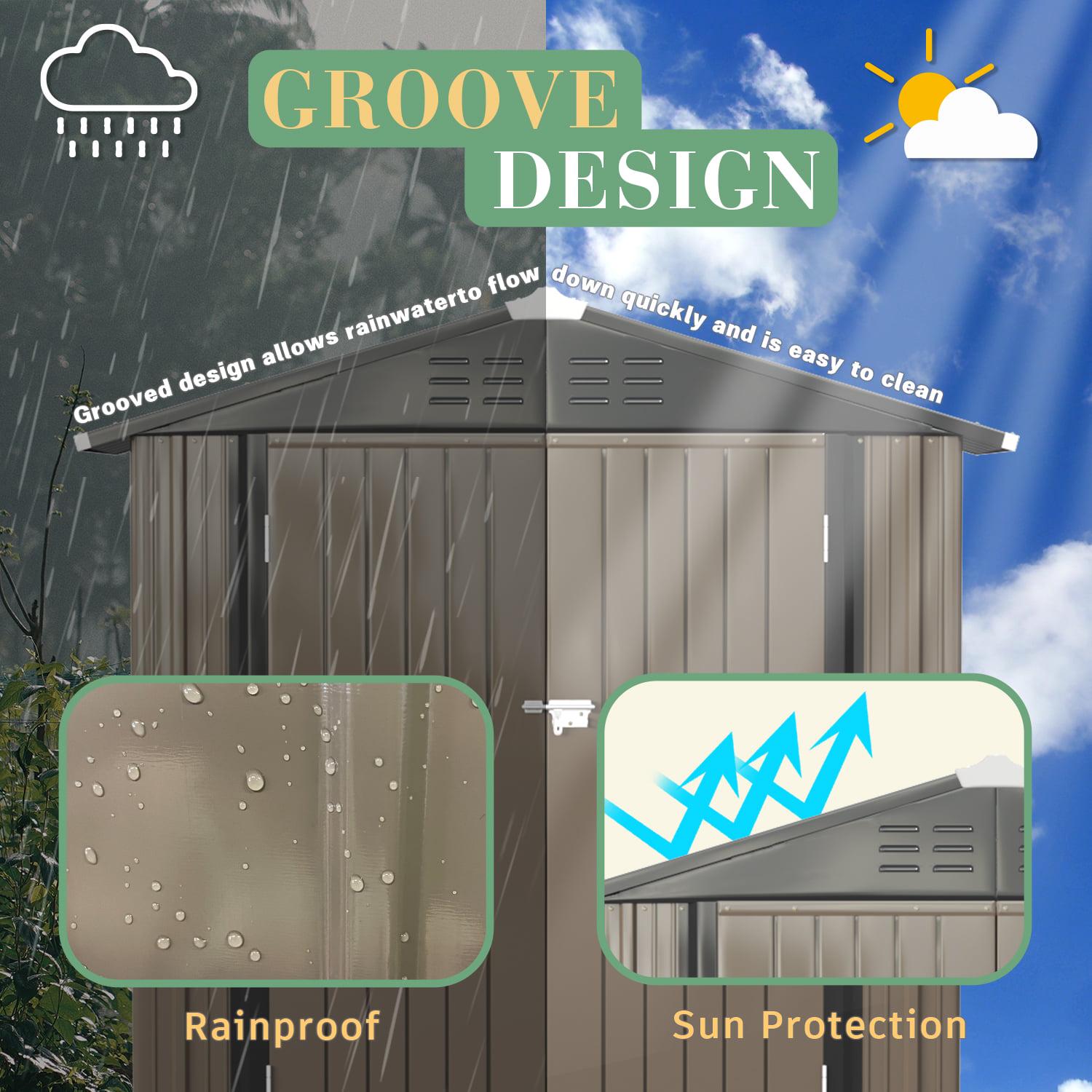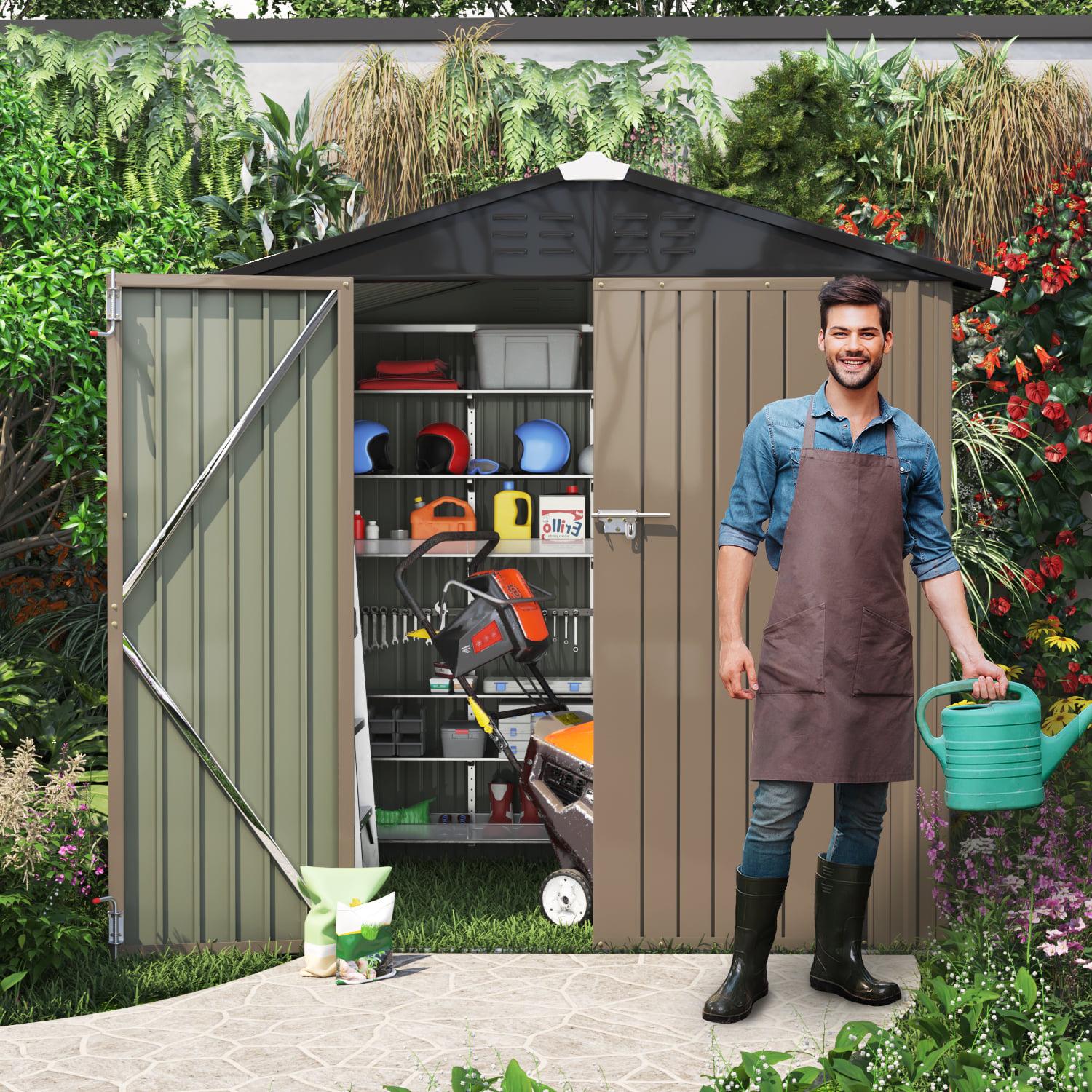 Lacoo 4′ x 6′ Outdoor Storage Metal Shed for Tool Storage, Outdoor House for Backyard and Garden,Brown