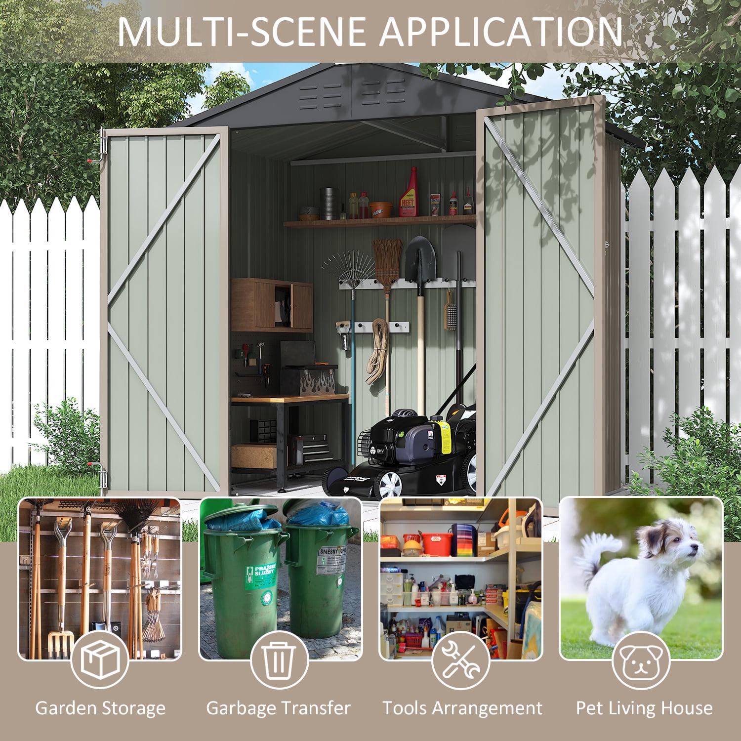 This storage shed has a 5×3×6 / 6×4×6.2 / 8×6×6.3 ft. storage space, which can hold a lot of things and meet your various storage needs. It can also be used as a pet house and a garbage room