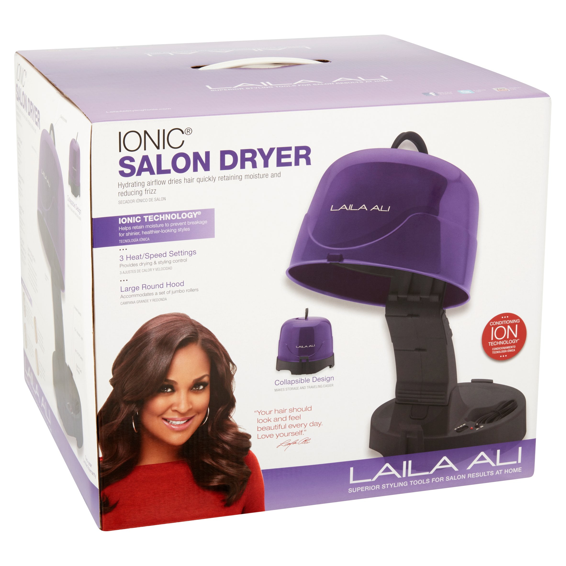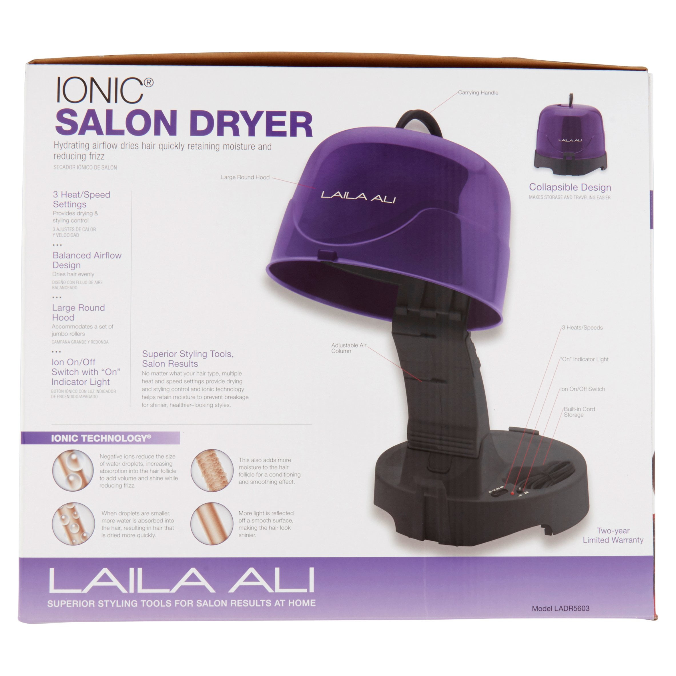 Get that salon-perfect set at home. You’re going to love what the Laila Ali Salon Ionic Dryer does for your hair! This beauty uses the power of ionic technology to retain hair’s moisture and prevent breakage while drying. Its balanced airflow design even dries and its large, round hood accommodates even jumbo rollers. Two heat settings create the perfect look every time. This ionic hair dryer includes cord storage and handy anti-skid bumpers.