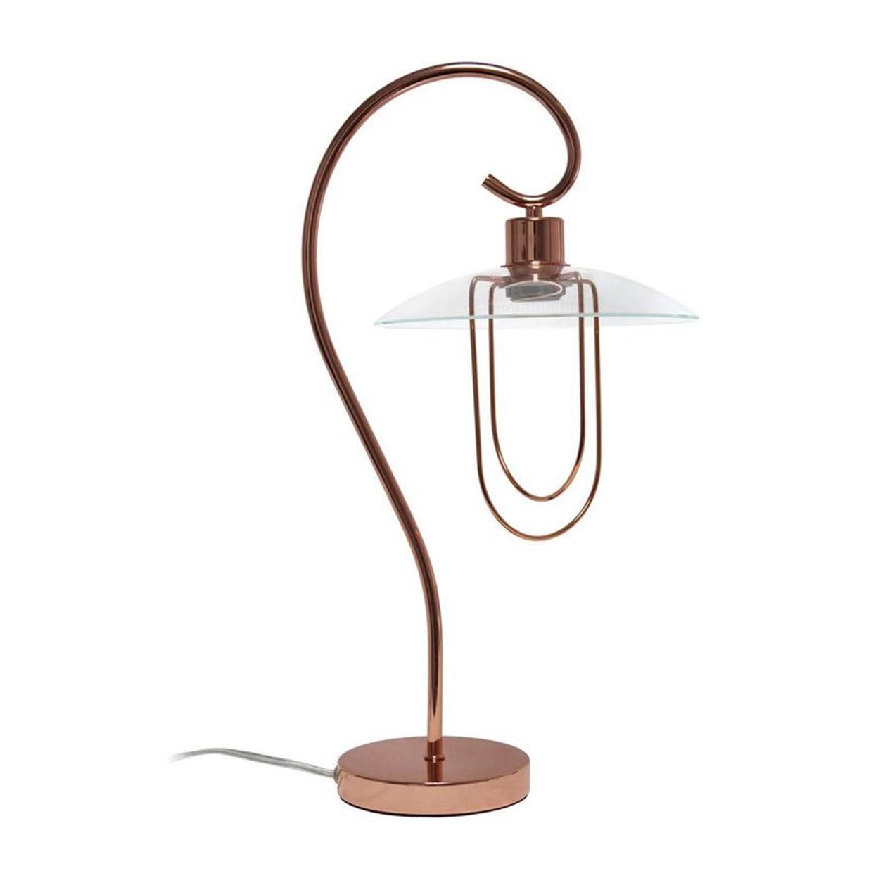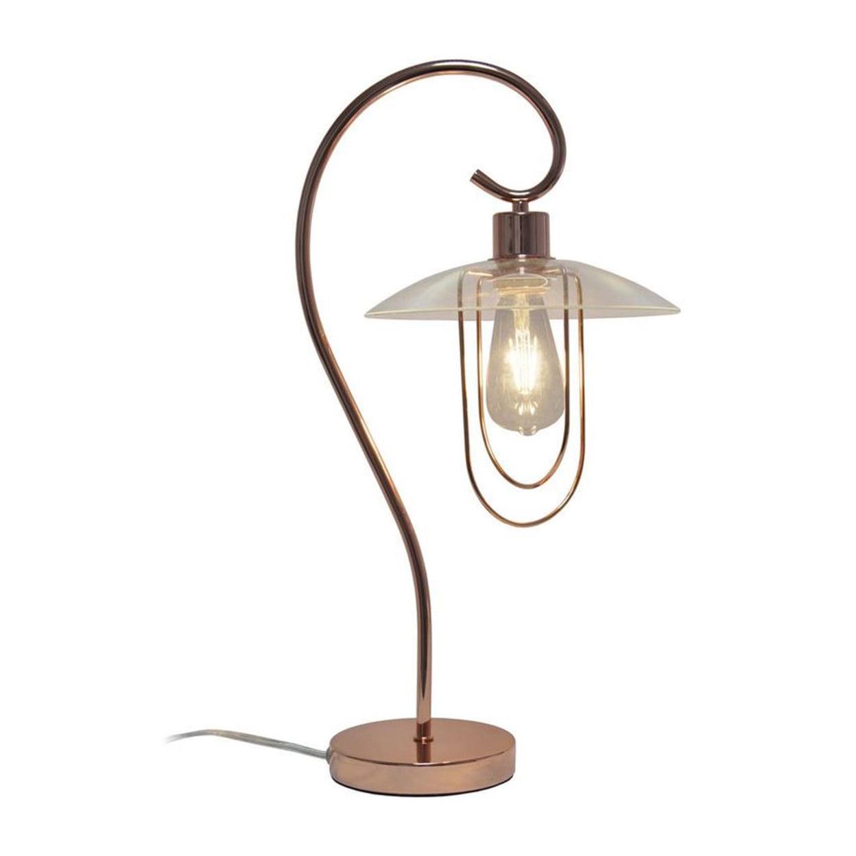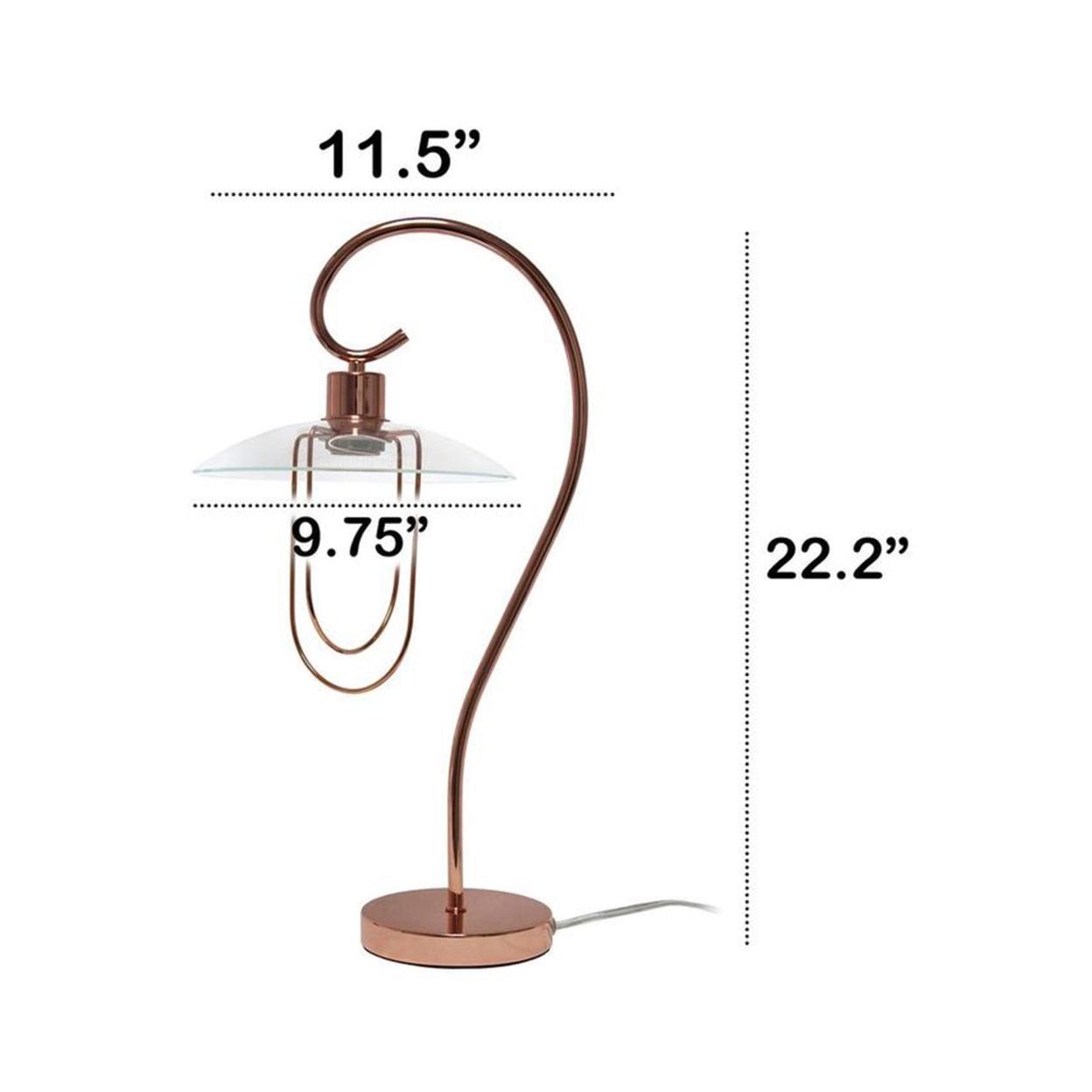 Lalia Home Modern Metal Scroll Table Lamp with Curved Metal Base and Clear Glass Shade – Rose Gold Description:
