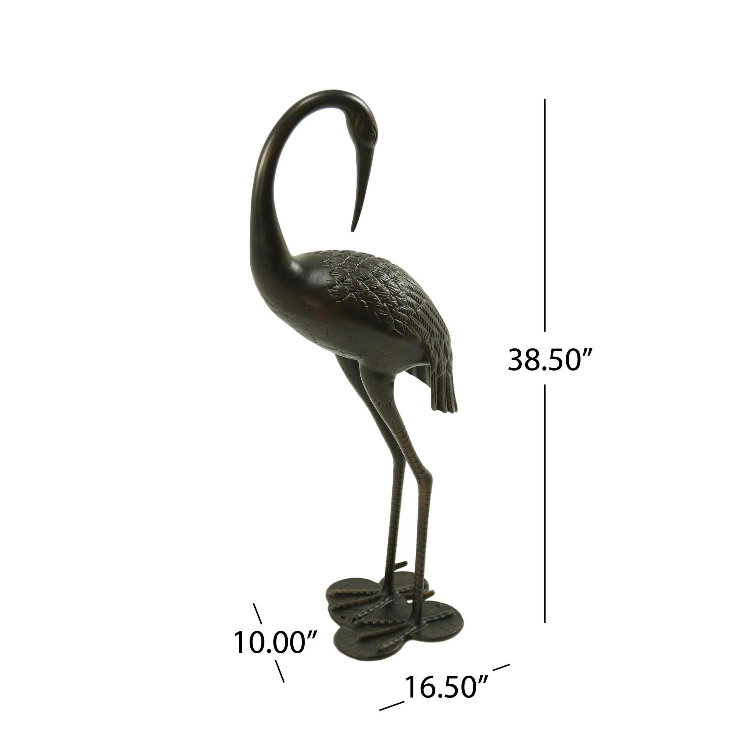 Add some flair and uniqueness to your patio with this rust-proof aluminum crane d cor. Featuring a stylish crane preening itself, this piece adds the perfect amount of wow” to your patio or backyard. Regardless of if you have a water area to place your crane in