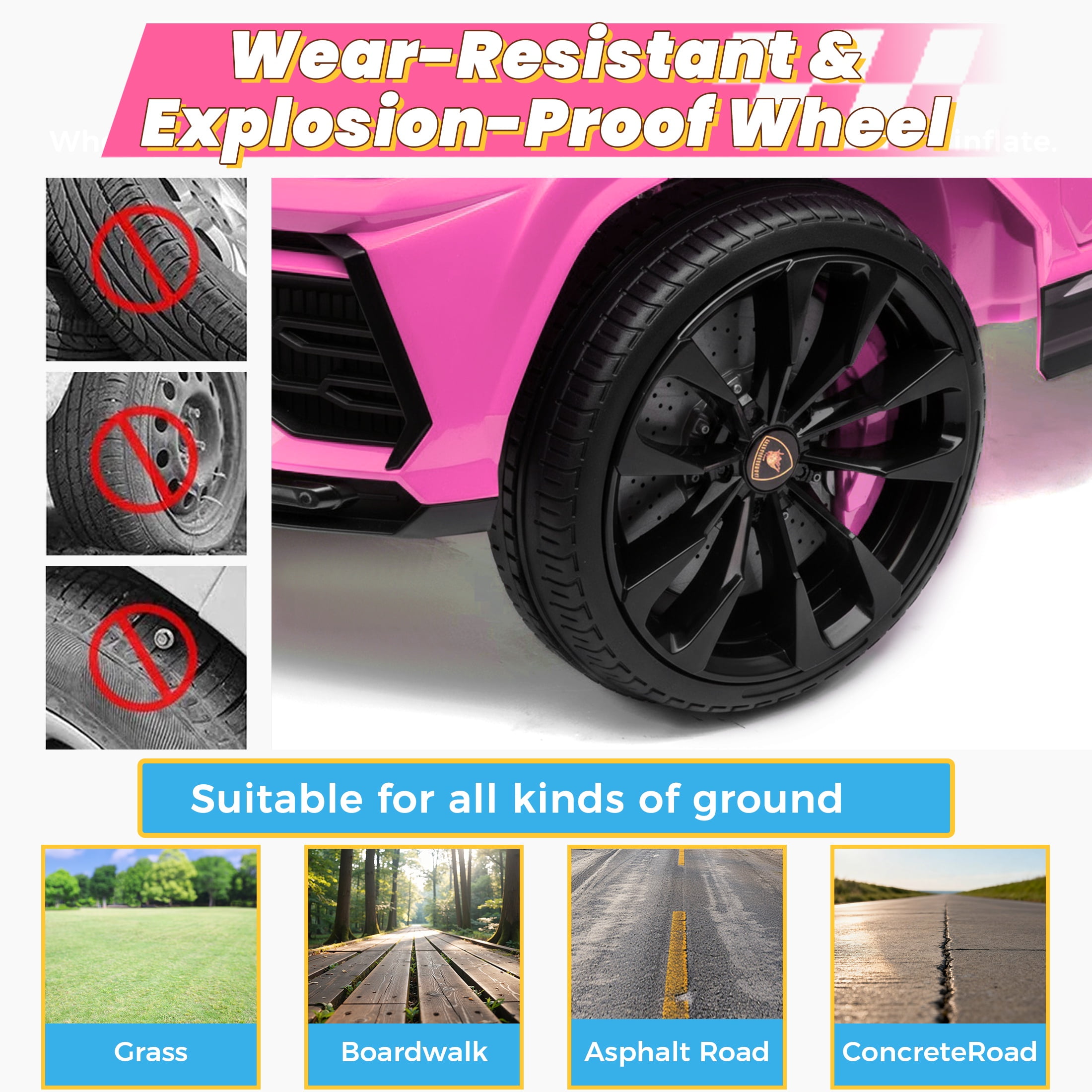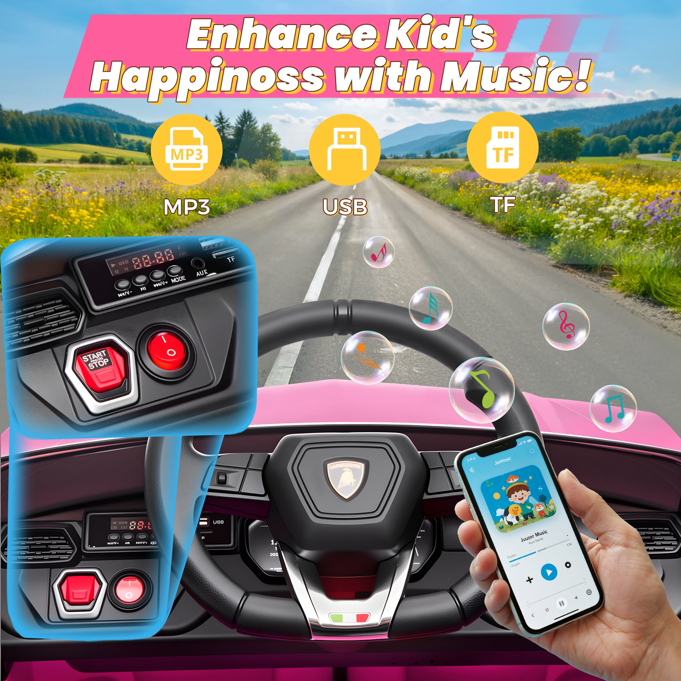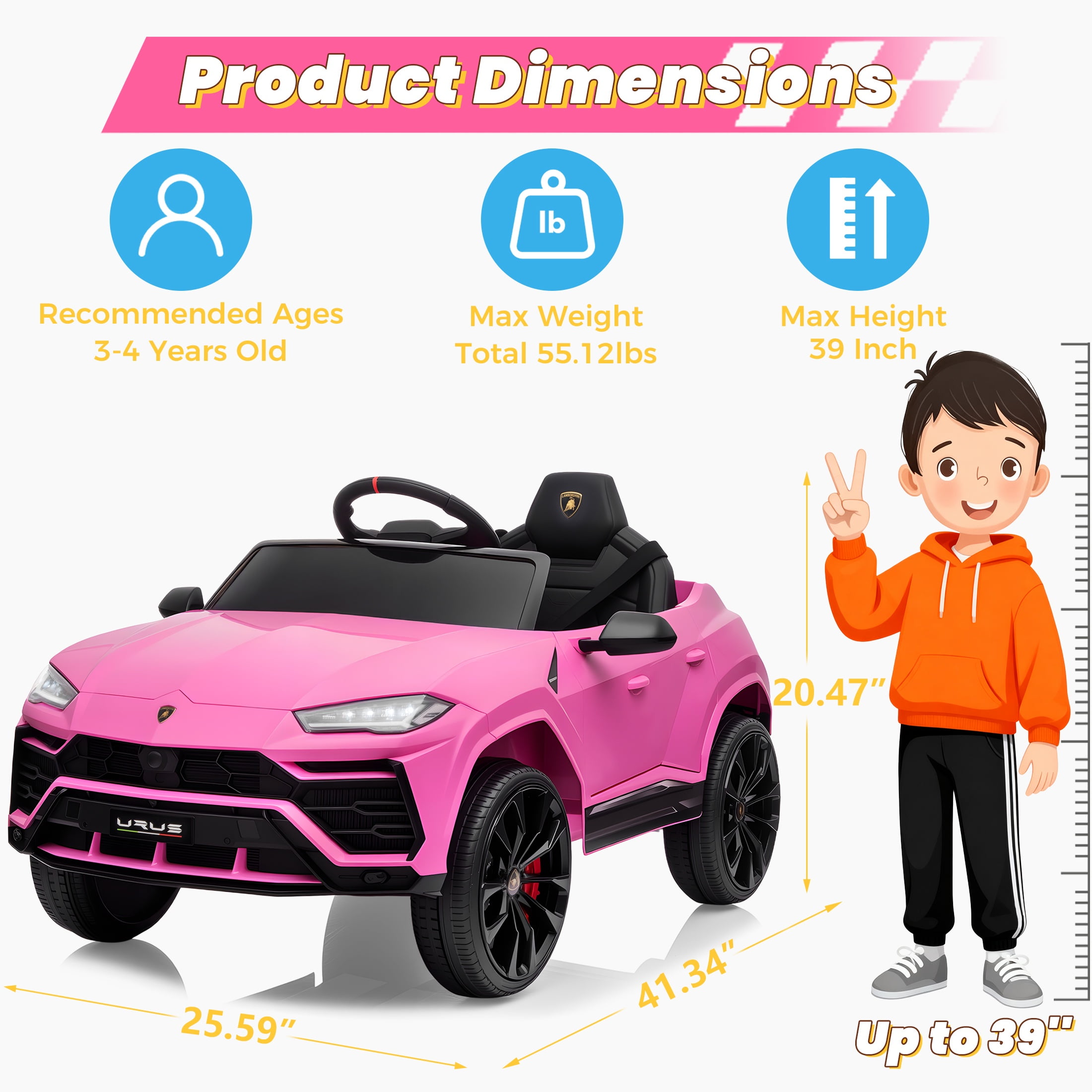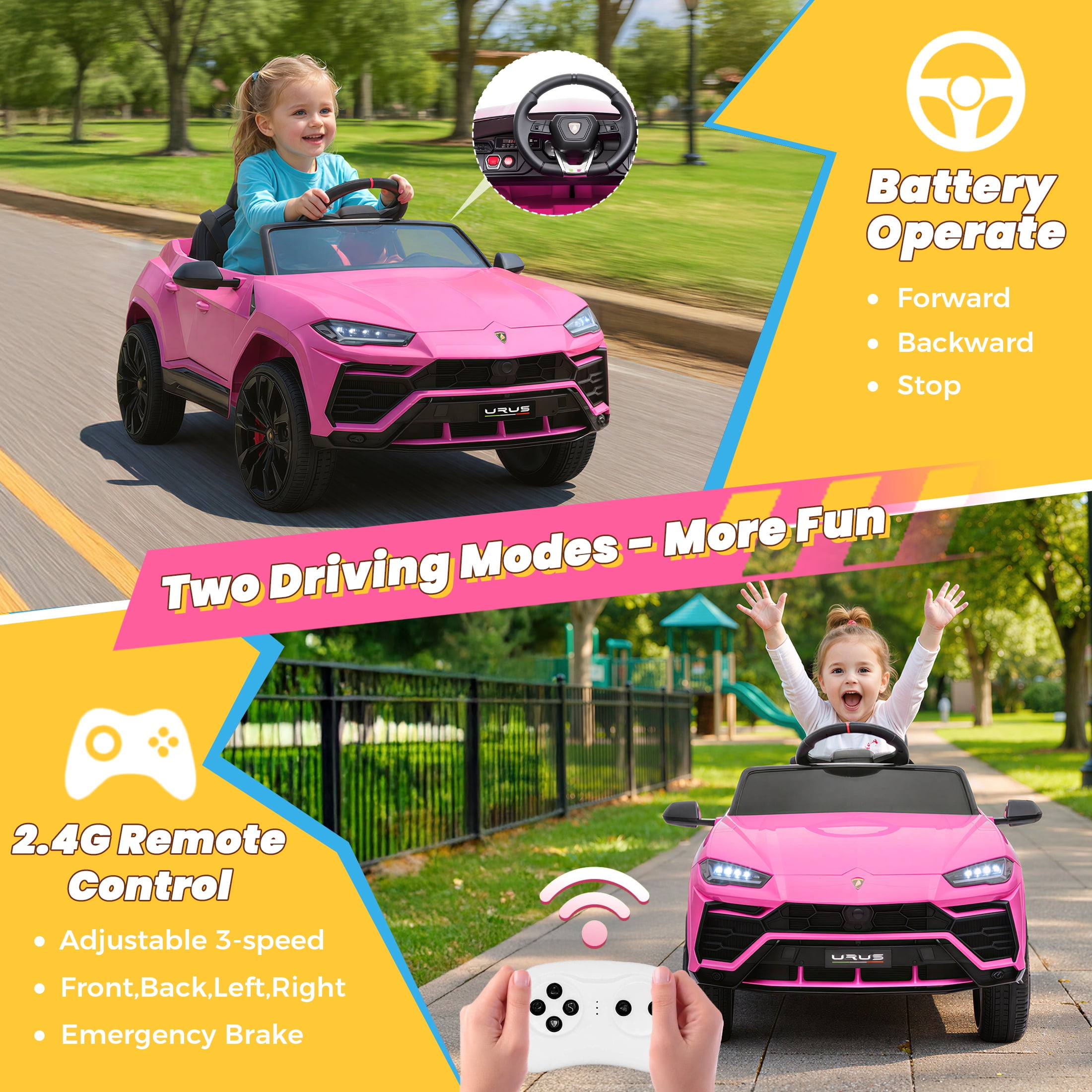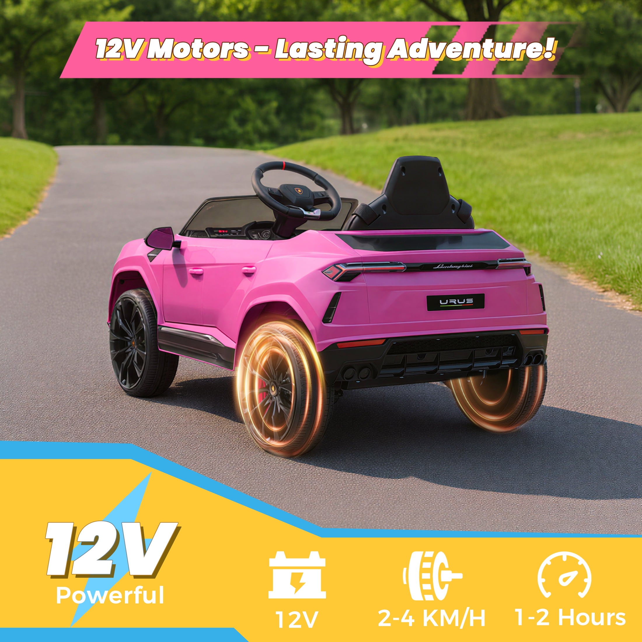 Lamborghini 12V Kids Ride On Car with Remote Control, Battery Powered Electric Car with 4 Wheels, USB, Ride On Toys for 3+ Years Olds Girls Boys, Pink