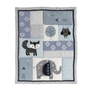 Lambs and Ivy Stay Wild 4-Piece Crib Bedding Set – Blue, Gray, White, Animals