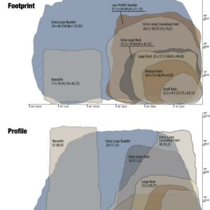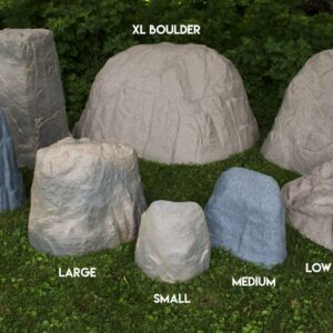 – LARGE SIZE The rock’s overall dimensions are of 15.5 x 22 x 16 (height x length x width). Please keep in mind that the rocks have an irregular shape and are tapered. To determine the best size for your application, please review the rock dimensions photo showing variations in both height and overall footprint.
