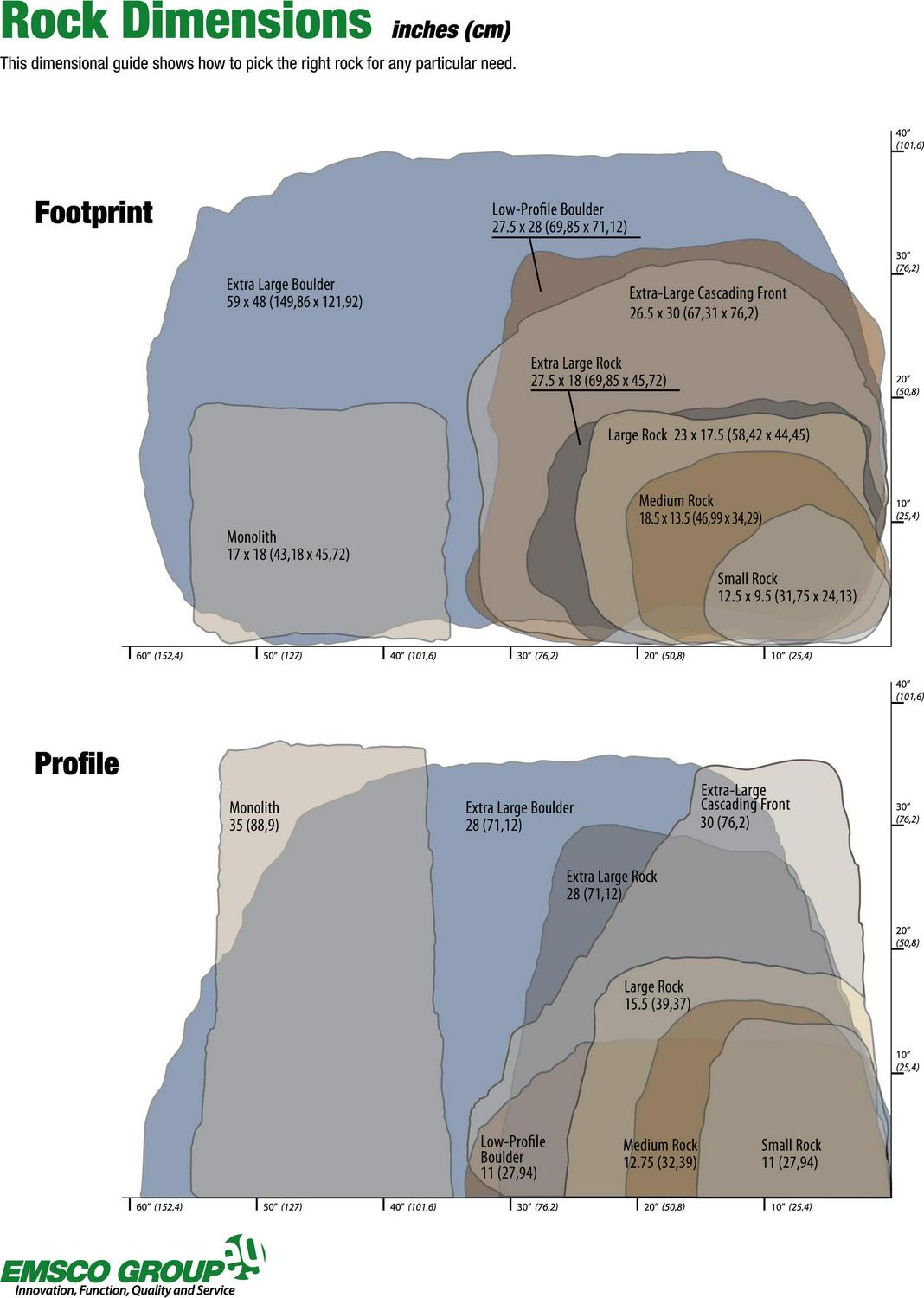 – OTHER ARCHITECTURAL ROCKS AVAILABLE EMSCO has a complete line of landscape rocks available. The rocks come in many different sizes, along with an assortment of detailed textured rocks.