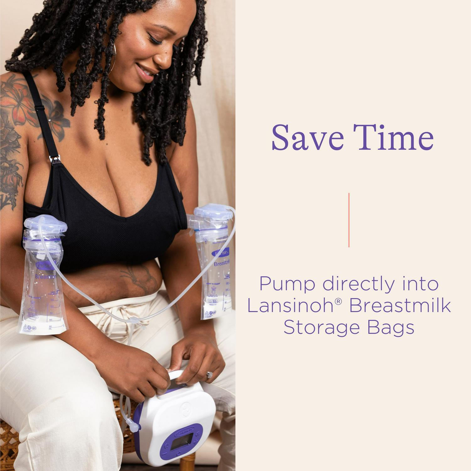 – FITS YOURS LIFE Easily switch from single to double pumping plus pump directly into Lansinoh Breastmilk Storage Bags to save time