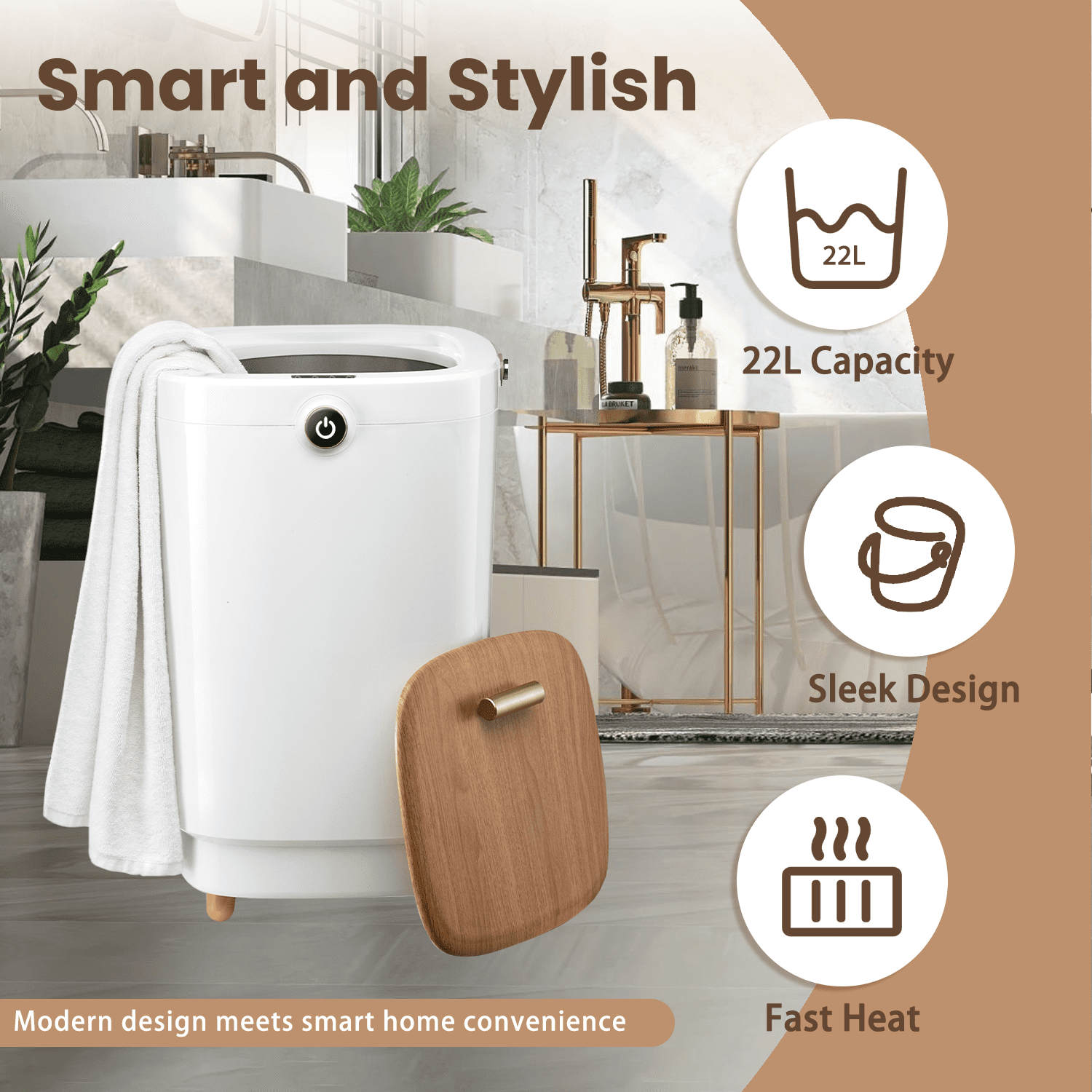 Enjoy the ultimate convenience with our WiFi-controlled towel warmer. Easily set the startup time and enjoy warm towels exactly when you need them. With rapid heating, it reaches 150°F in just ten minutes and offers three heating modes for customized comfort. The 20L capacity accommodates large towels and bathrobes, ensuring ample space without squeezing. Its easy-to-move design and removable lid make it perfect for various settings, from home bathrooms to professional spas. Enjoy luxury and warmth every day, backed by our dedicated customer service.