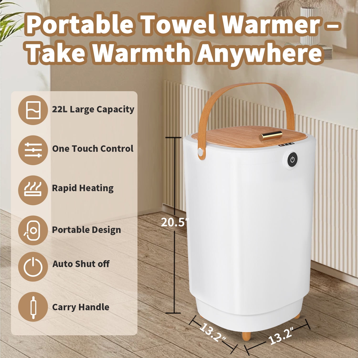 Towel Warmer for Bathroom, 22L Hot Towel Warmer Buckets Fits Up to Three 70″X80″ Oversized Bathrobe, Spa Towel Warmers with 4 timers & Auto Shut Off – Bathrobe, Blanket, Toalla, Yellow
