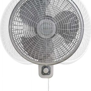 Stay cool in the heat using this Lasko 16″ Wall Mount Fan. It features a multi-position pivot that lets you tilt and lock the head. This lets you control the direction of the airflow. The fan can be mounted on the wall with ease. It’s ideal for areas with limited floor space like workshops and offices. This Lasko wall fan can oscillate 90 degrees for directional cooling. This wall-mounted fan features 3 speeds. Rotary and pull-cord controls let you change the settings and turn it on or off with ease. This oscillating wall fan runs quietly and will not distract you. It’s designed to be durable with grills that resist rust and corrosion. The Lasko 16″ Wall Mount Fan is easy to assemble. Color: White