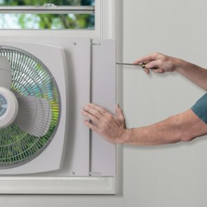 The Lasko White 16-inch window fan will keep you cool both day and night. It provides whole-house ventilation with an electrically reversible intake and exhaust motor. Use exhaust during the day to create a refreshing indoor breeze that expels accumulating heat. Use intake at night to draw in the cool evening air. With the Storm Guard feature, the window can be closed behind the fan quickly to keep rain water from blowing into your home. This window fan fits most double-hung, casement, and sliding windows.