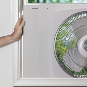 – 16-inch window fan with an electrically reversible intake and exhaust motor