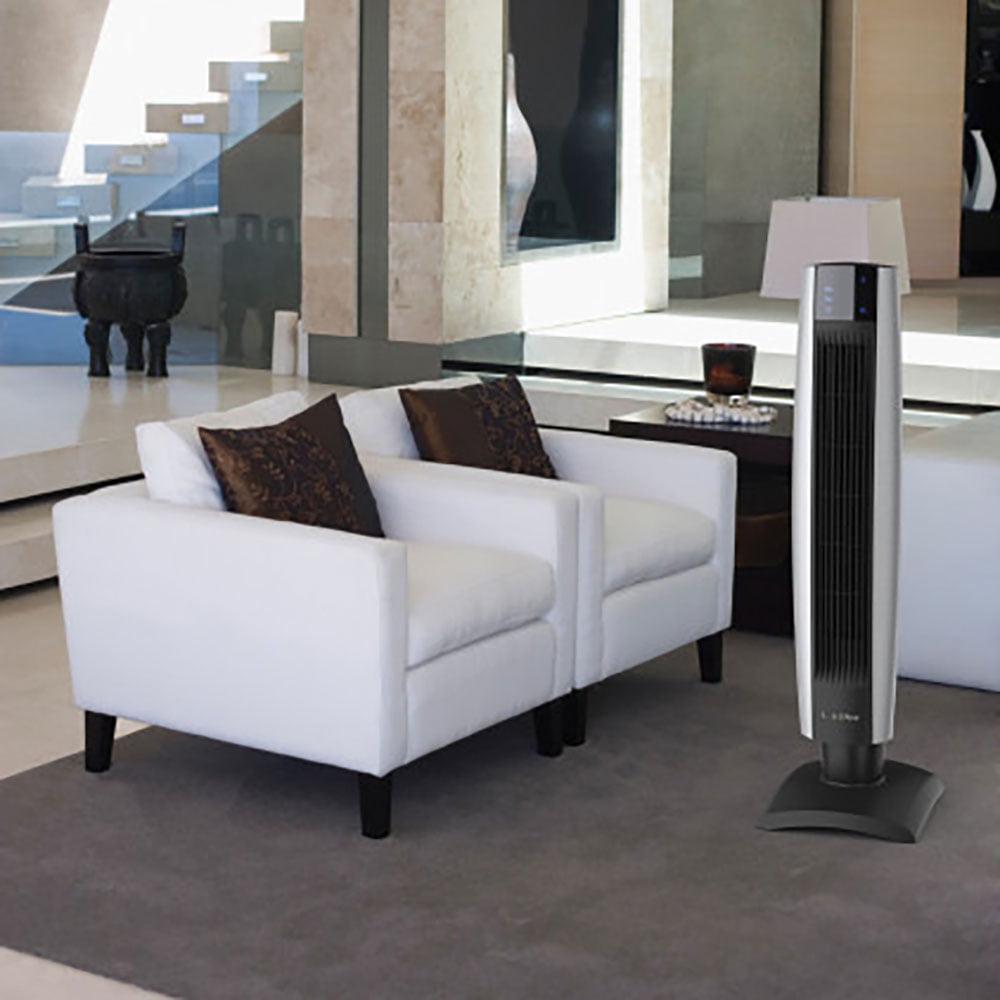 – Whisper quiet oscillating tower fan provides high-speed airflow and a slim design that is ideal for any bedroom or office space