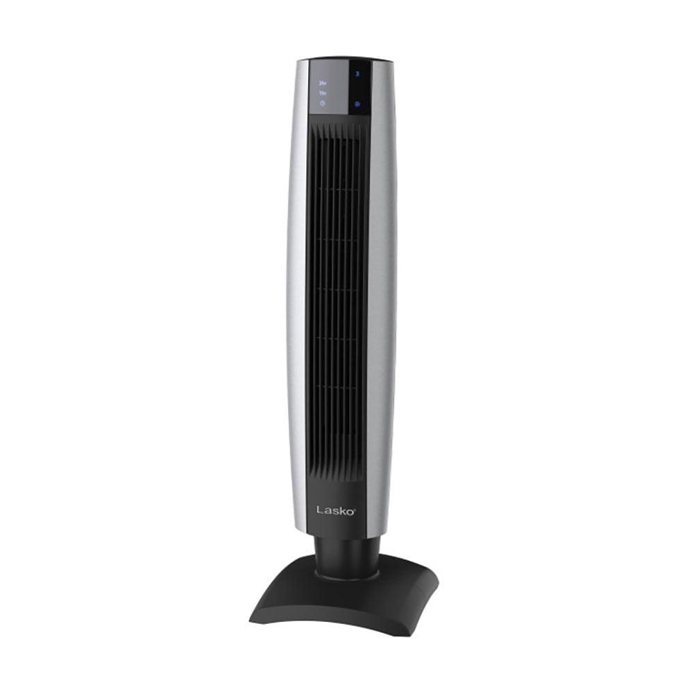 Bask in a cool breeze and experience the high-speed efficiency of the Lasko 3 Speed Oscillating Tower Fan. This fan offers an array of features including the slim, space-saving design fits perfectly in any corner and is ideal for your home or office. Equipped with 3 quiet speeds, you can choose the optimal airflow speed that will keep you perfectly comfortable during busy workdays or quiet weekends. The multi-function remote allows you to control fan speed, oscillation direction, timer, and on/off function with a simple push of a button. The remote also has a convenient holder on the back of the fan. The electronic automatic shut-off timer can be set up to 7 hours, so you can set it once and forget about it. This function will save you money and peace of mind. Minimal assembly is required but takes just minutes and does not require any tools. This fan includes patented safety fuse technology and an easy-carry handle so you can easily move the fan from room to room. Enjoy convenience, functionality, and comfort all in 1 appliance with the Lasko 3 Speed Oscillating Tower Fan.