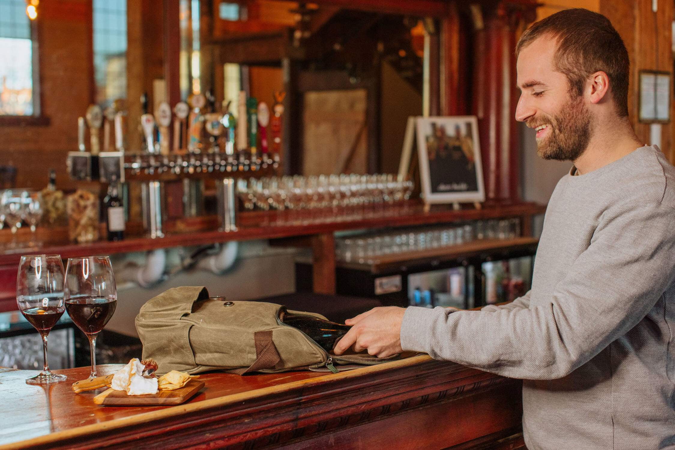 The durable waxed cotton cansvas construction makes this wine and cheese carrier stylish, portable, and rugged Removable interior divider Designed by picnic time family of brands, a family-owned company in California