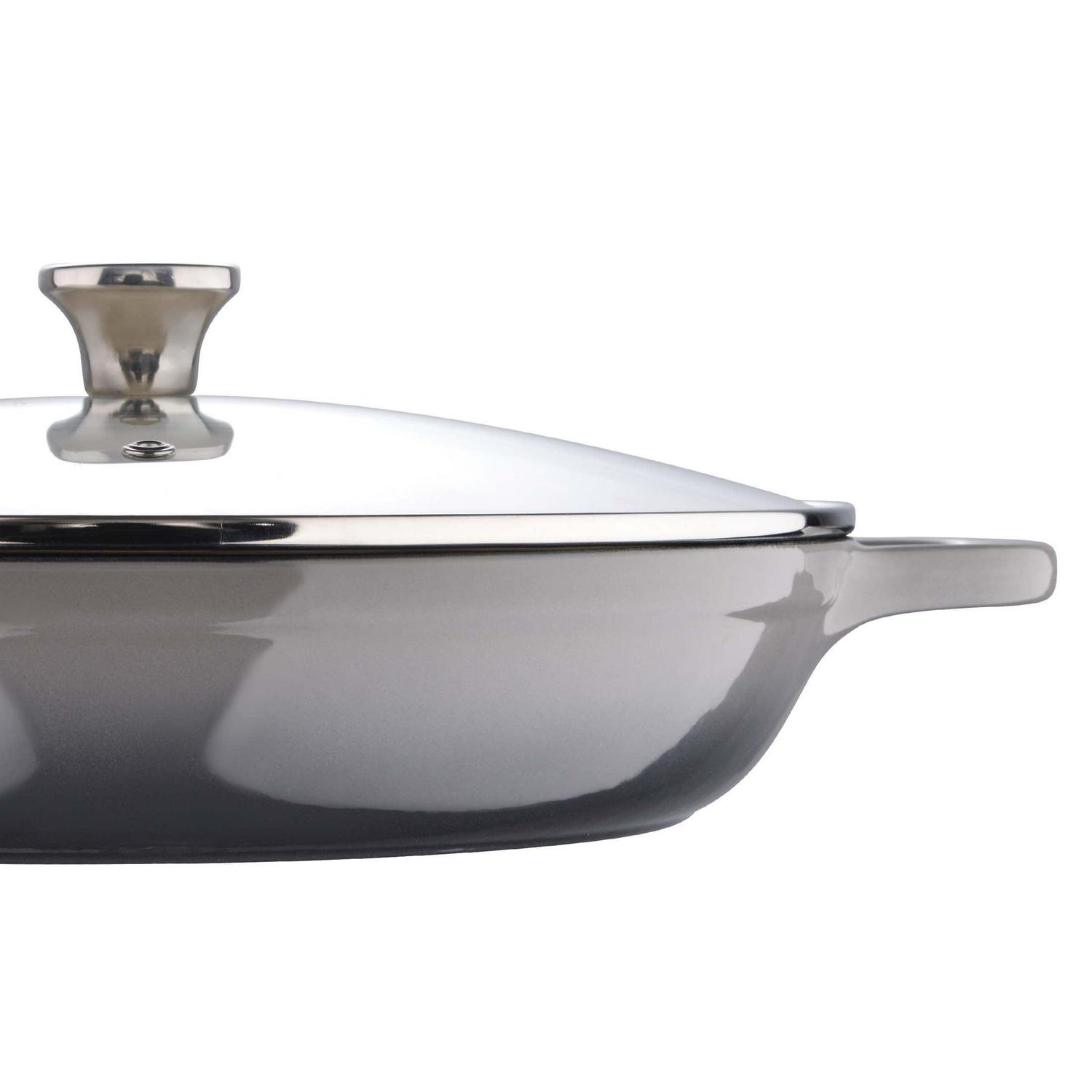 Legacy by MasterPRO – 12 Legacy Enamel Cast Iron Braiser with Vented Tempered Glass Lid, 12 Inches and Ombre Design, 2 Quarts, Fog