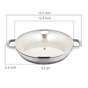 – Easy to Clean – This braiser from MasterPRO is easy to clean, and the durable enamel resists dulling, staining, and chipping. Enameled Cast Iron Cookware is safe for all stove types, including induction, and is oven safe up to 500-degrees Fahrenheit.