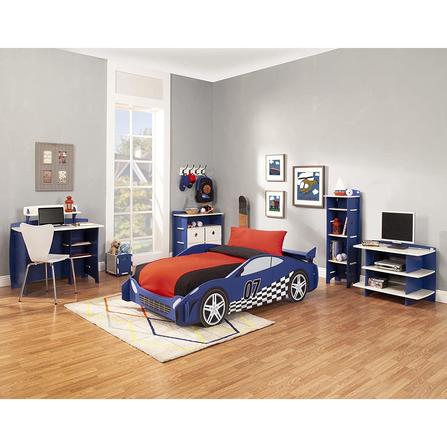 Legare Race Car Adjustable 3-Shelf Bookcase – Blue/White