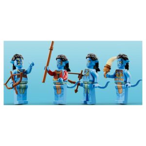 – Na’vi Minifigures Included – Comes with 4 Na’vi LEGO minifigures: Jake Sully, Neytiri, Mo’at, and Tsu’Tey, plus bows, arrows, and spears accessory elements for movie-inspired play.