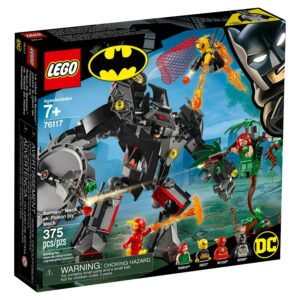 Team up with Batman to rescue The Flash from Poison Ivy and Firefly with this action-packed LEGO Superhero DC Toy 76117 Batman Mech vs. Poison Ivy Mech Construction set. The posable Batman Mech, features an opening minifigure cockpit, dual stud shooter, spinning saw blade, and a net shooter, while the Poison Ivy Mech has a minifigure cockpit, stud shooter, and a collapse function. and both mechs have gripping hands to grab a minifigure. This fun DC toy for kids includes 4 LEGO minifigures plus 10 assorted Power Burst elements to customize your builds, minifigures, and superhero weapons for endless imaginative play.