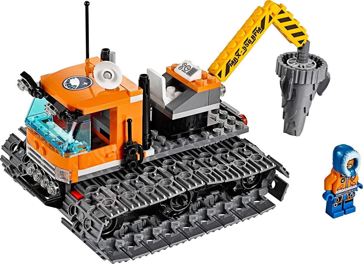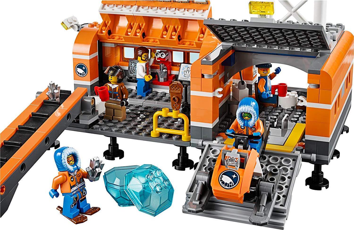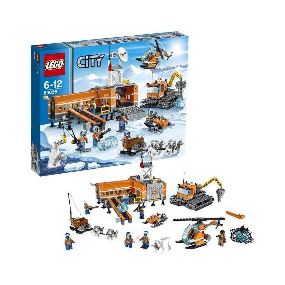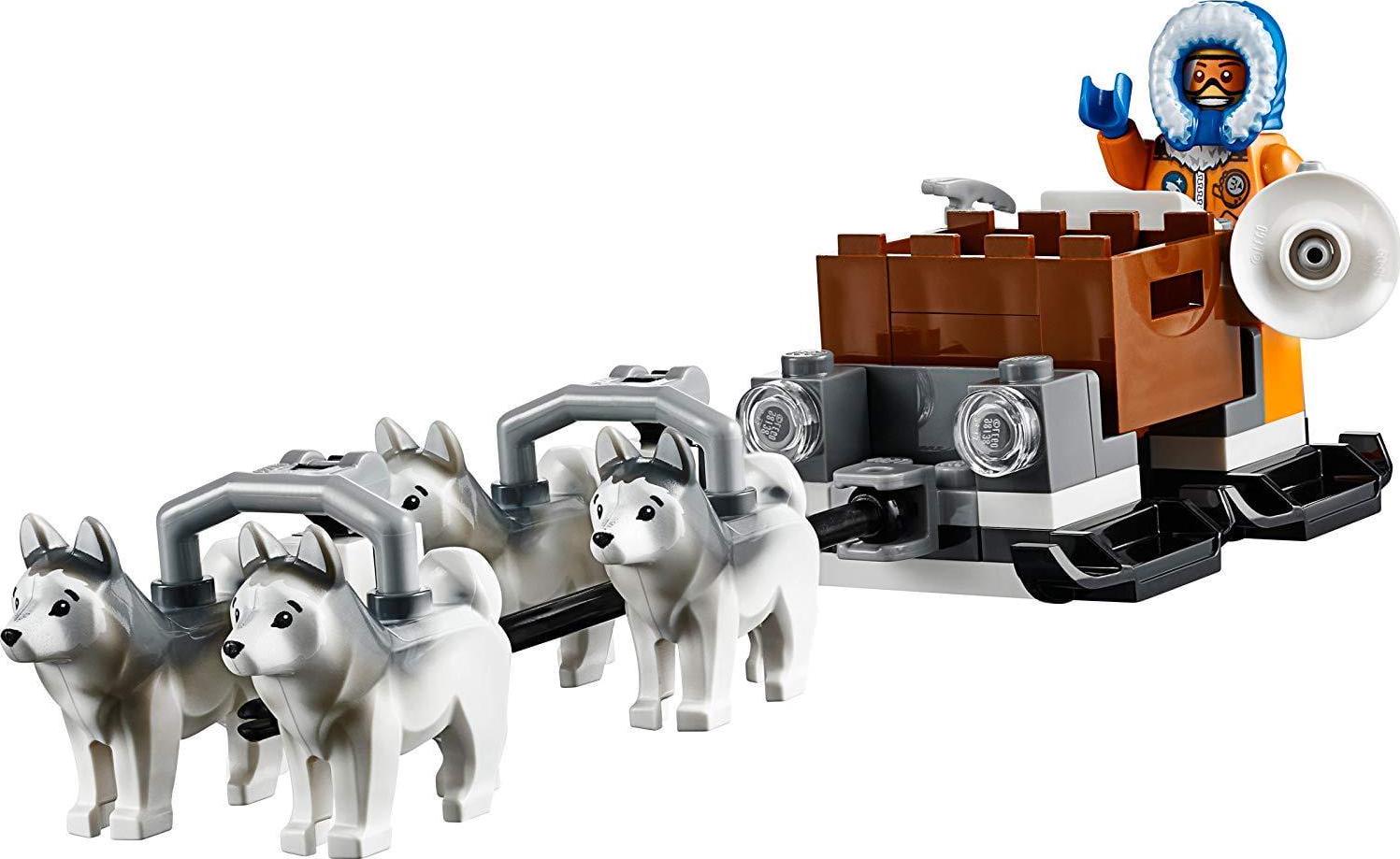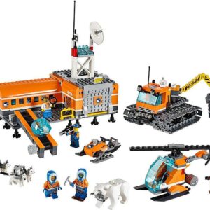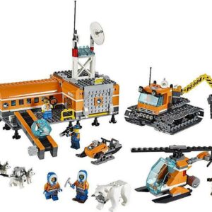 Head out into the wilds and set up the hi-tech LEGO City Arctic Base Camp to explore the secrets of the ice! Set out on major expeditions with the snow scooter and husky sled team. Investigate the secrets of the ice with the powerful tracked exploration vehicle. Call for helicopter back up and deploy the winch and net to carry large blocks of ice back to base. Transfer the mysterious crystals into the laboratory on the conveyor belt and open the walls and roof of the lab for easy play. Help the scientist and research assistant analyze your findings with the two computers, microscope and other equipment.