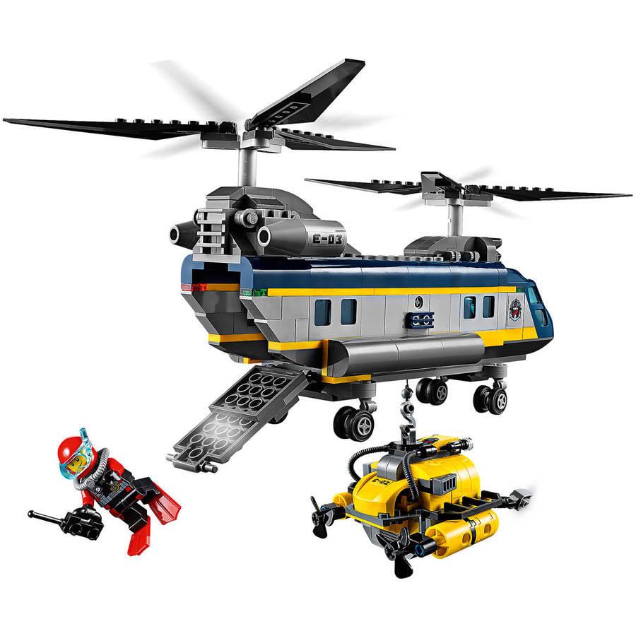 Emergency. The deep-sea explorers in their submarine are being attacked by a shark and need your help. Jump aboard the awesome Deep Sea Helicopter, spin the powerful twin rotors and thunder over the ocean at breakneck speed. When you reach the scene, lower the winch, hook up the submarine and head for the safety of land. It’s just another day for a LEGO City helicopter hero. Lego Deep Sea Helicopter 60093