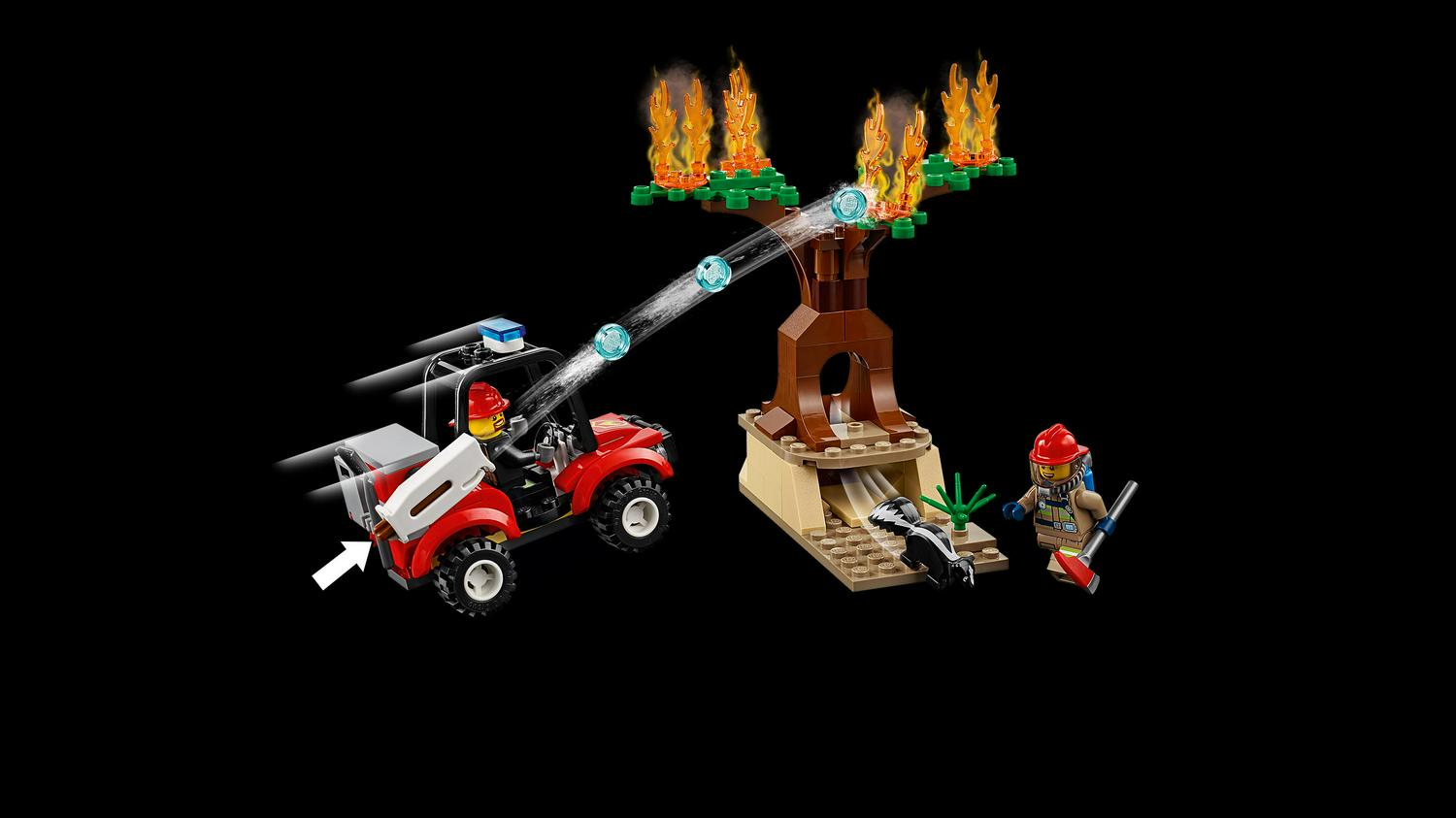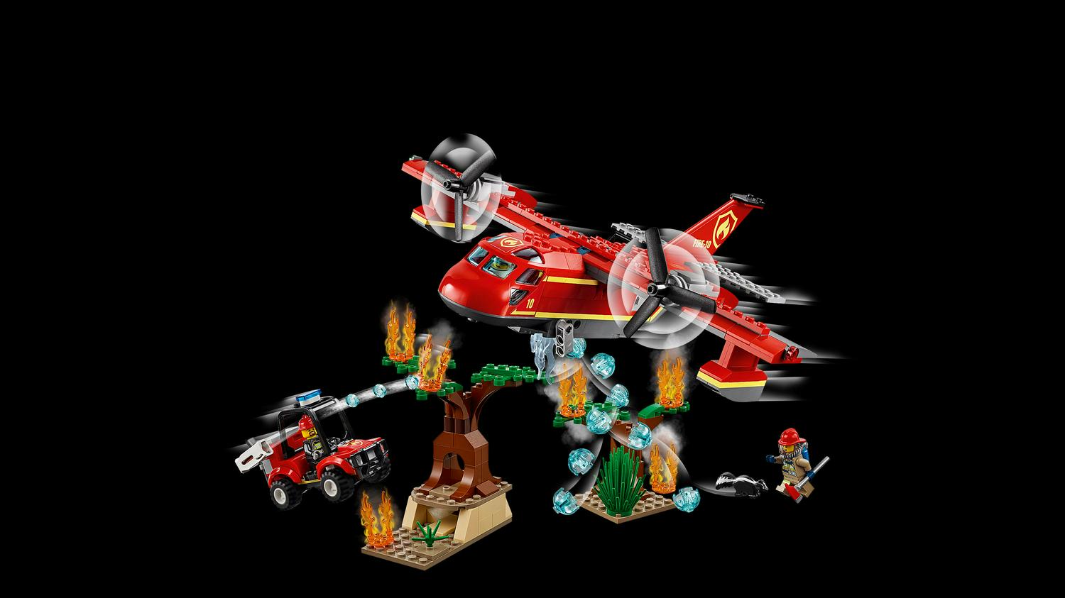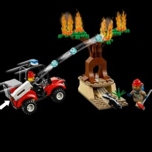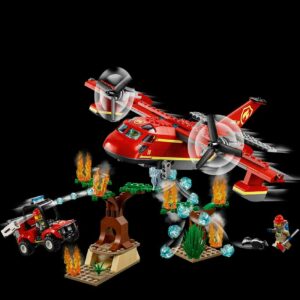 – This forest fire rescue plane set features a fire airplane with opening and detachable minifigure cockpit, spinning propellers and opening top and bottom hatches, plus a fire buggy with a new shot stud shooter and roll cage