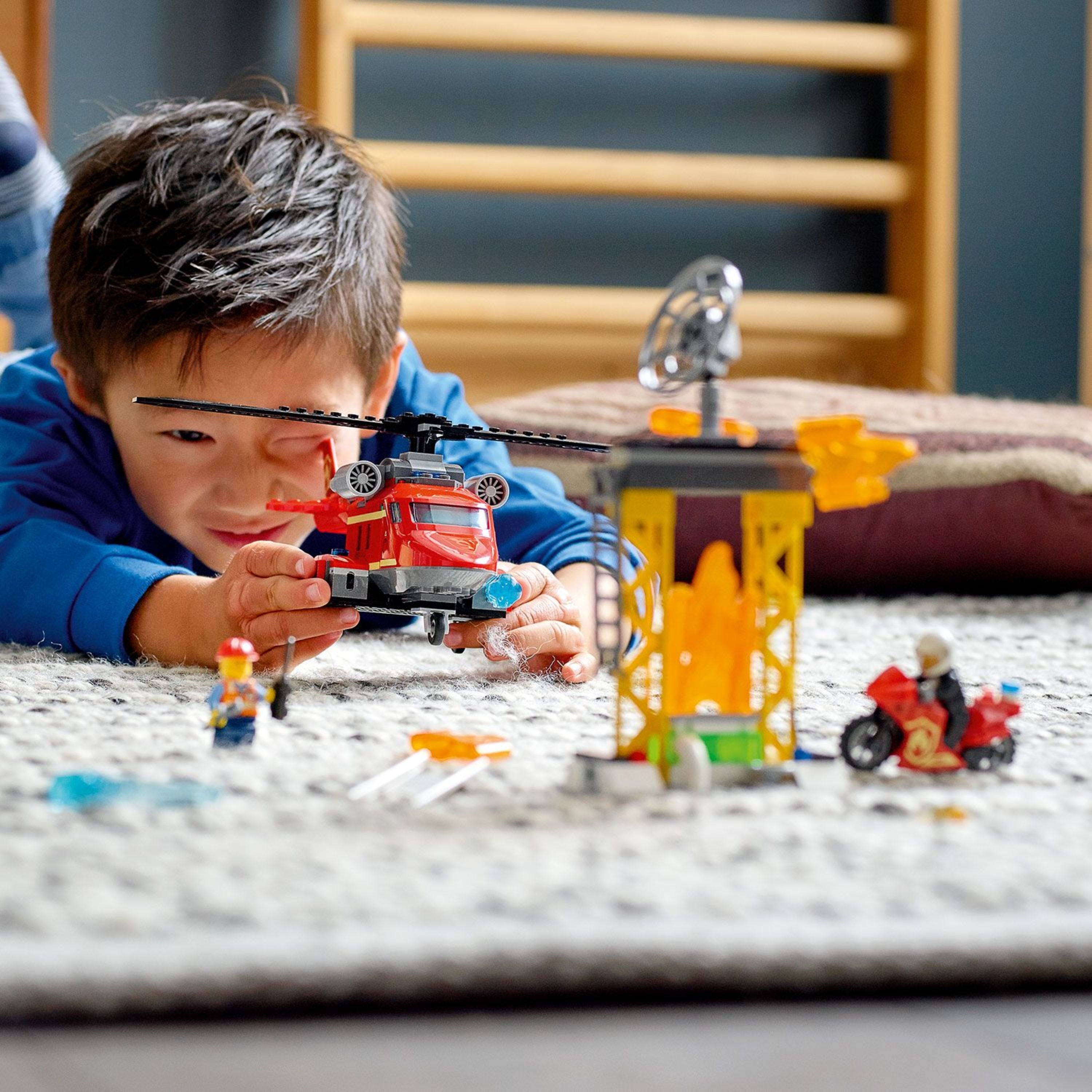 A treat for everyday heroes aged 5 and up, this Fire Rescue Helicopter (60281) playset is perfect for kids who love cool firefighting vehicles and for fans of the LEGO City Adventures TV series This set has everything kids need to build a toy helicopter, motorbike, power station setting and LEGO fires, plus 3 minifigures, including Clemmons from the LEGO City Adventures TV series Kids can stack the LEGO flames to create big fires, then shoot the helicopter’s water cannon elements to put them out and create LEGO City Adventures TV series stories with 3 fun minifigures A great gift idea for any occasion, this firefighter playset delivers endless hours of fun for LEGO City fans and kids aged 5 and up who love imaginative play When built, the fire rescue helicopter toy measures over 3.5 in. (10 cm) high, 10 in. (26 cm) long and 3.5 in. (9 cm) wide