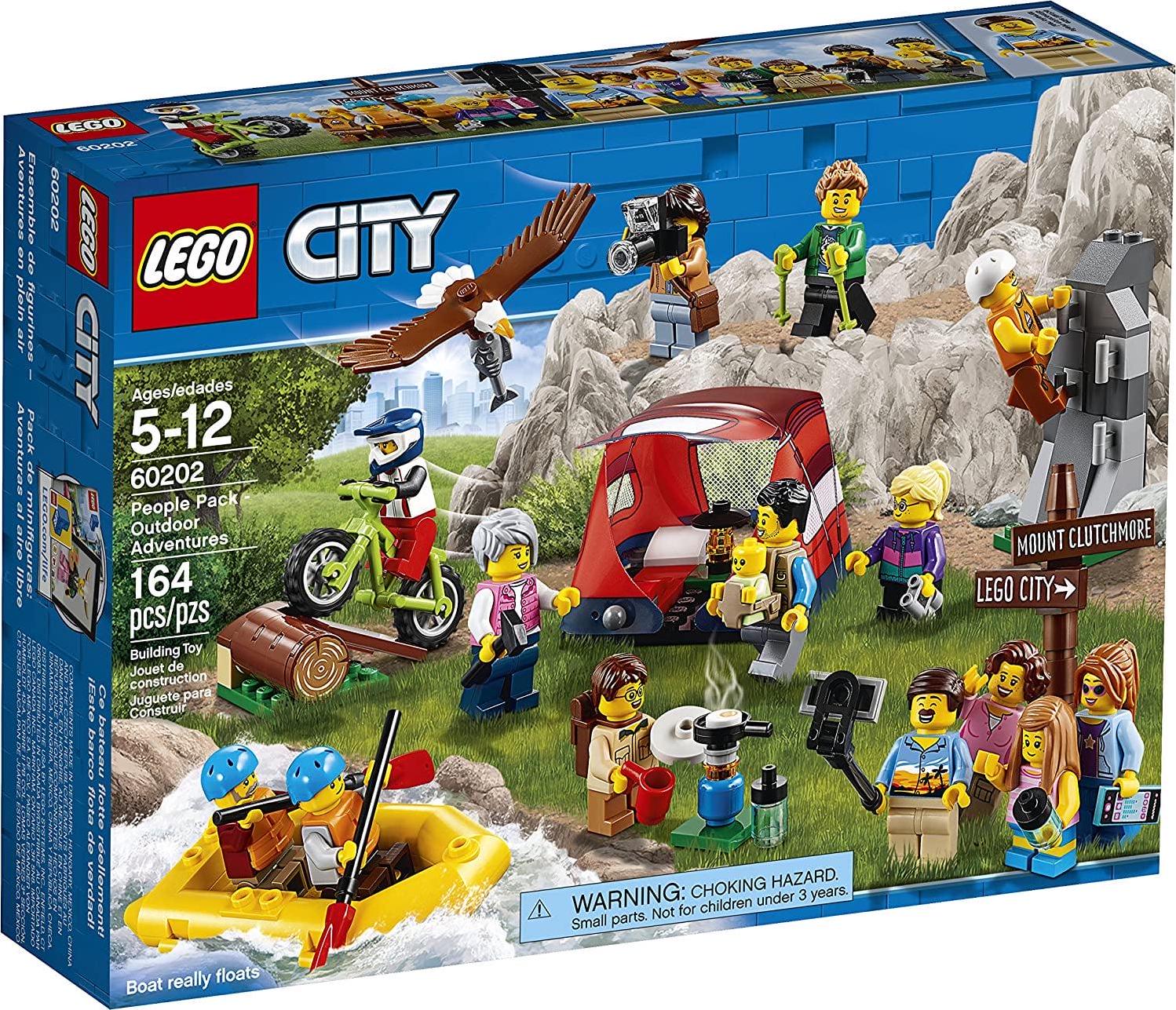 Build a great collection of outdoor-themed vignettes, including a mountain wall, tent, mountain bike and dinghy with this adventure playset!,Includes 14 assorted minifigures, plus baby and eagle figures and a motorbike toy,Tent measures over 1 (5cm) high, 2 (6cm) wide and 2 (6cm) deep Mountain wall measures over 2 (7cm) high, 1 (3cm) wide and 1 (3cm) deep Dinghy measures over 3 (9cm) long and 1 (5cm) wide,164 pieces Fun camping toy for boys and girls aged between 5 and 12 and for fans and kids of all ages,The LEGO City People Pack Outdoors Adventures inspires imaginative play and can be built together with all other original LEGO sets and LEGO building bricks for creative construction