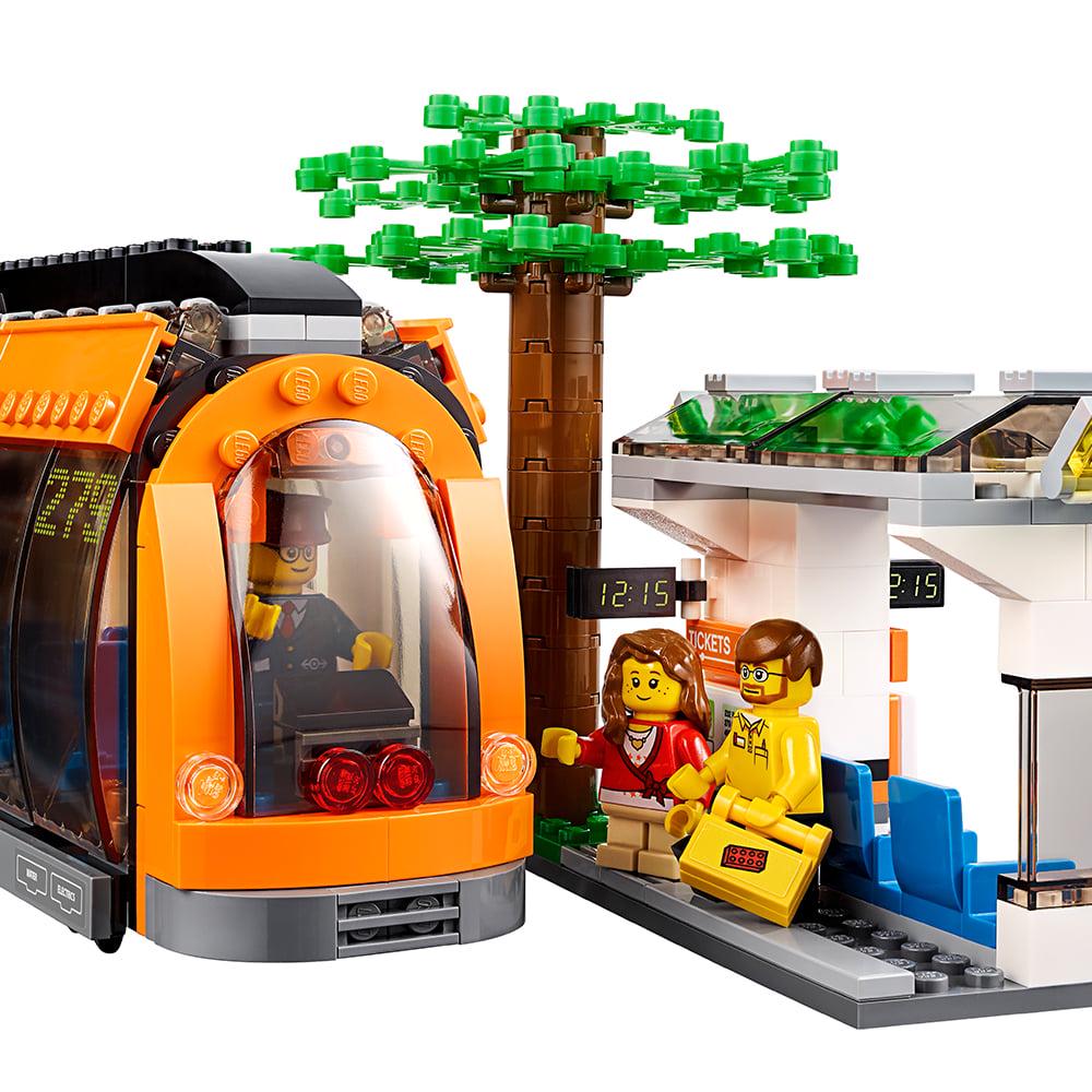 – Build your own City Square, complete with tram, LEGO Store, LEGO delivery truck, car dealership, three cars, tow truck, bike, pizza delivery scooter, tram stop, coffee shop, hot dog stand, and newsstand!