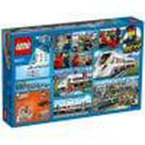 Travel around the city in no time with the motorized LEGO City High-speed Passenger Train! Operate the 8-channel, 7-speed infrared remote control to power around the curved tracks at top speed. This streamlined, super-efficient train has a high-speed front profile and electricity contact points on top. Lift off the roof of the front car to place the driver inside at the cool dashboard, and open the passenger cars to access the seats and tables. Wait for the train with the traveler at the way station, and pedal safely across the crossing with the cyclist once the train has gone past. Includes 3 Minifigures, train driver, traveler, and cyclist.