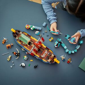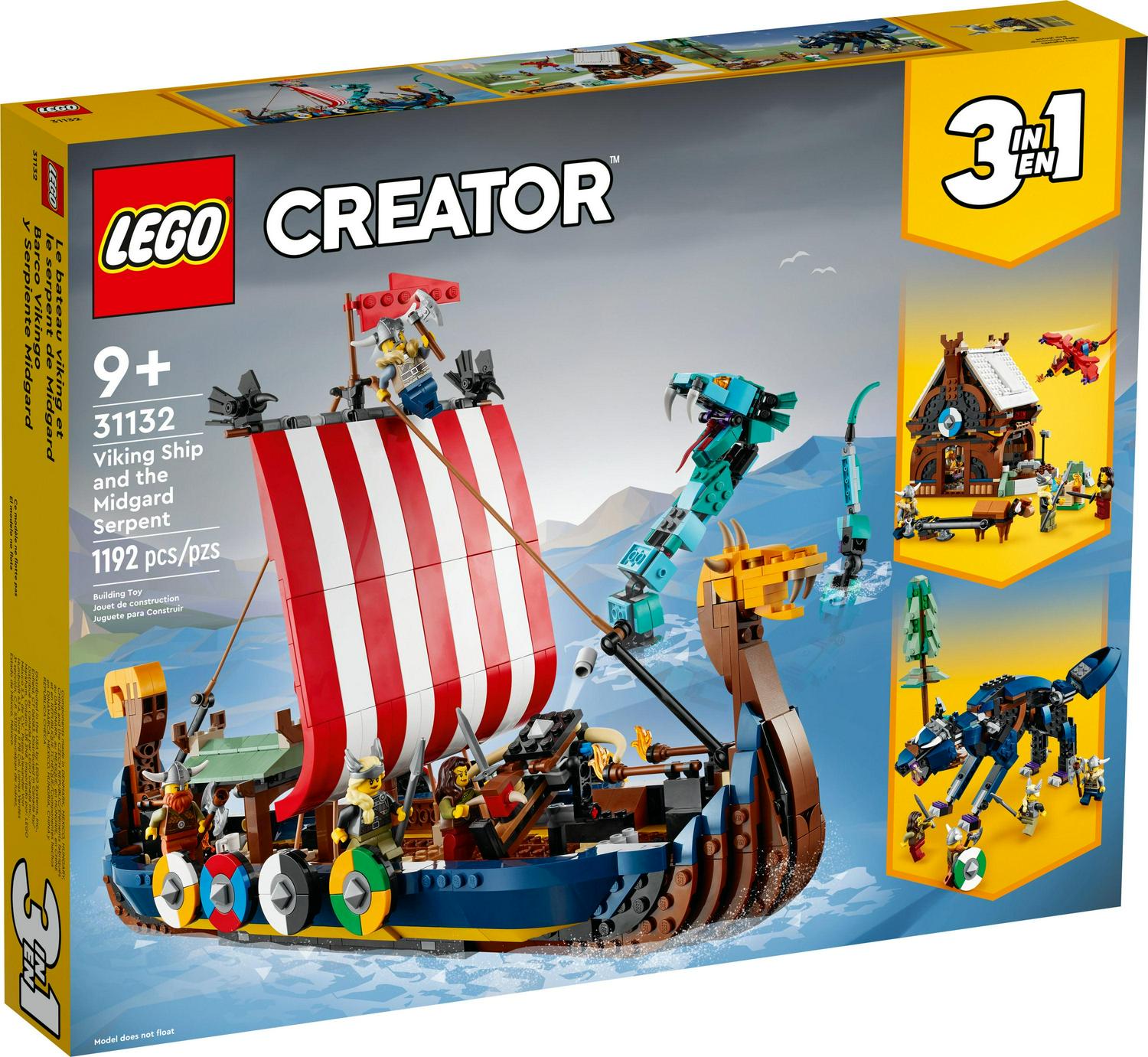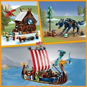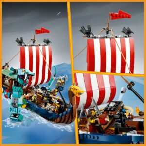 LEGO Creator 3 in 1 Viking Ship and the Midgard Serpent, Transforms from Amazing Ship to Viking House or Fenris Wolf Figure, Gifts for Kids, Boys, and Girls, 31132
