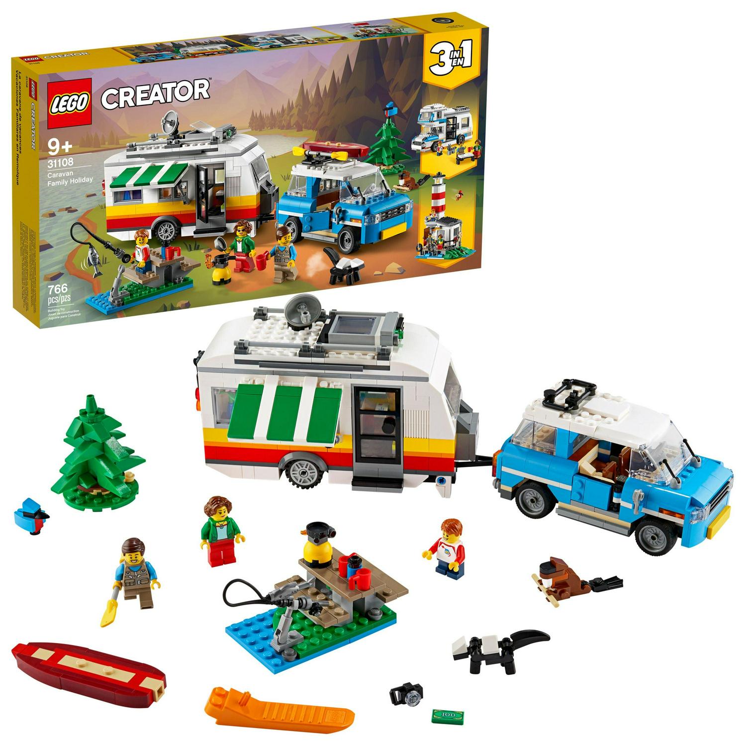 – This set gives kids 3 options for play: A LEGO Creator 3in1 Caravan Family Holiday 31108, camper van or lighthouse. The set also has 3 minifigures and 3 different brick-built animals for extra play fun