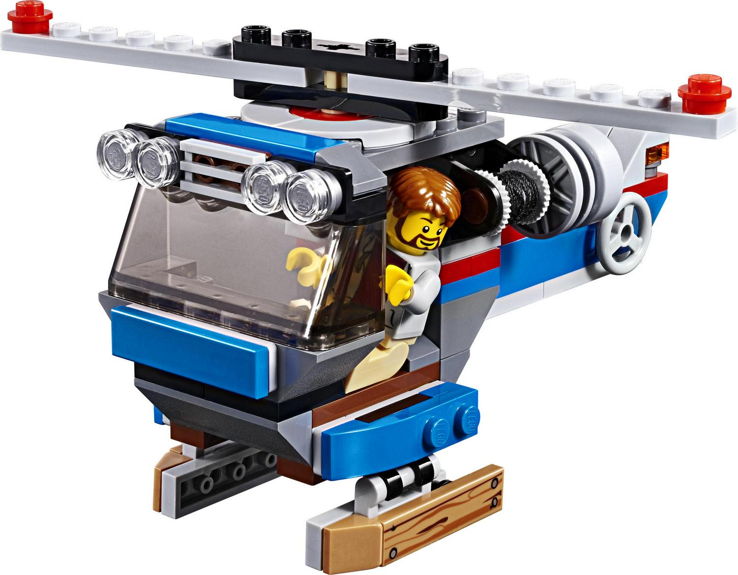 Continue the adventure with this 3-in-1 model. Rebuild the Off-roader to create a Wilderness Campsite with shelter, dinghy and mountain stream, or carry out daring rescue missions with a Winch Helicopter.